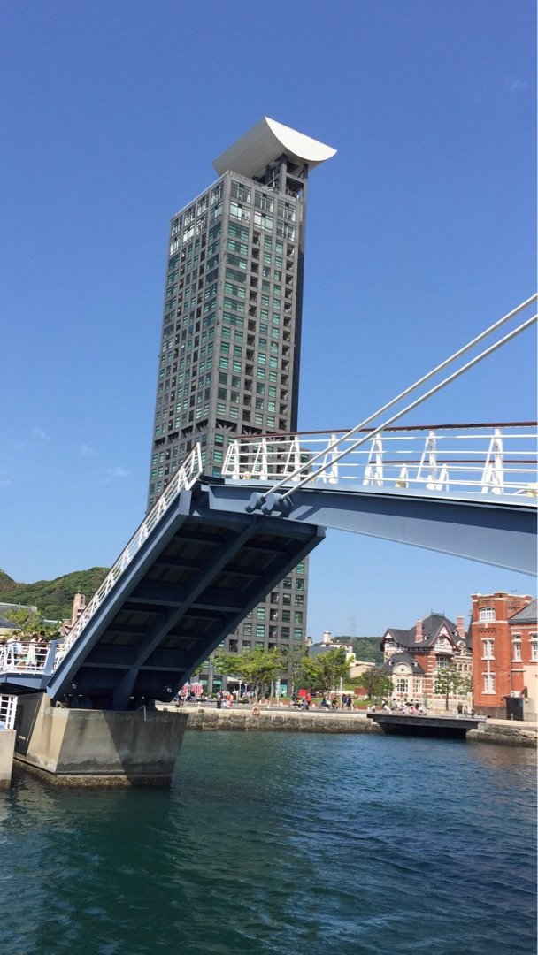 看到吊桥的开合,听说是日本唯一的步行者专用吊桥,一天的开合次数只有六次,想看的话需要算准时间看到吊桥的开合,听说是日本唯一的步行者专用吊桥,一天的开合次数只有六次,想看的话需要算准时间。吊桥的造型是有趣的非对称型,一侧有桥墩和斜拉索,另一侧则只有桥面。晚间桥面两侧会点灯,在水面形成倒影景观。