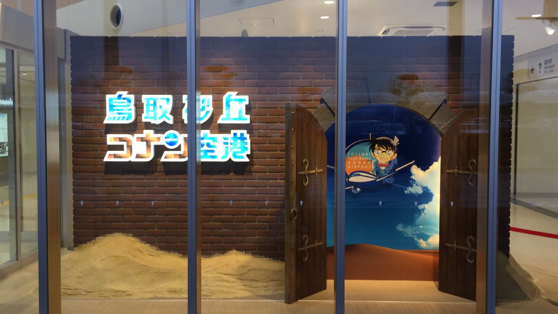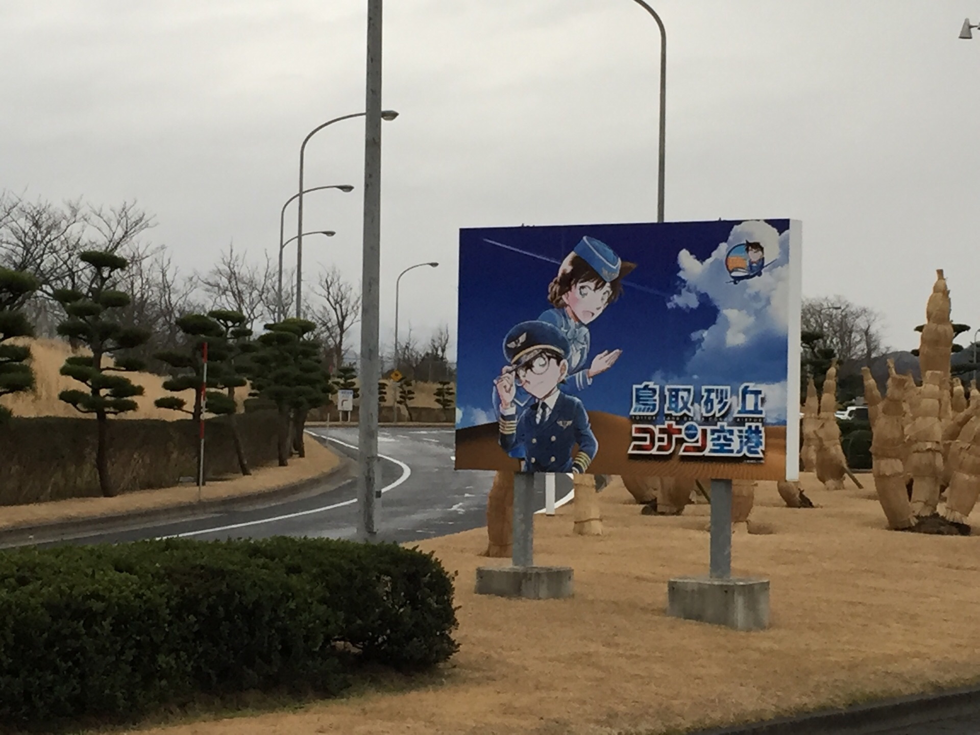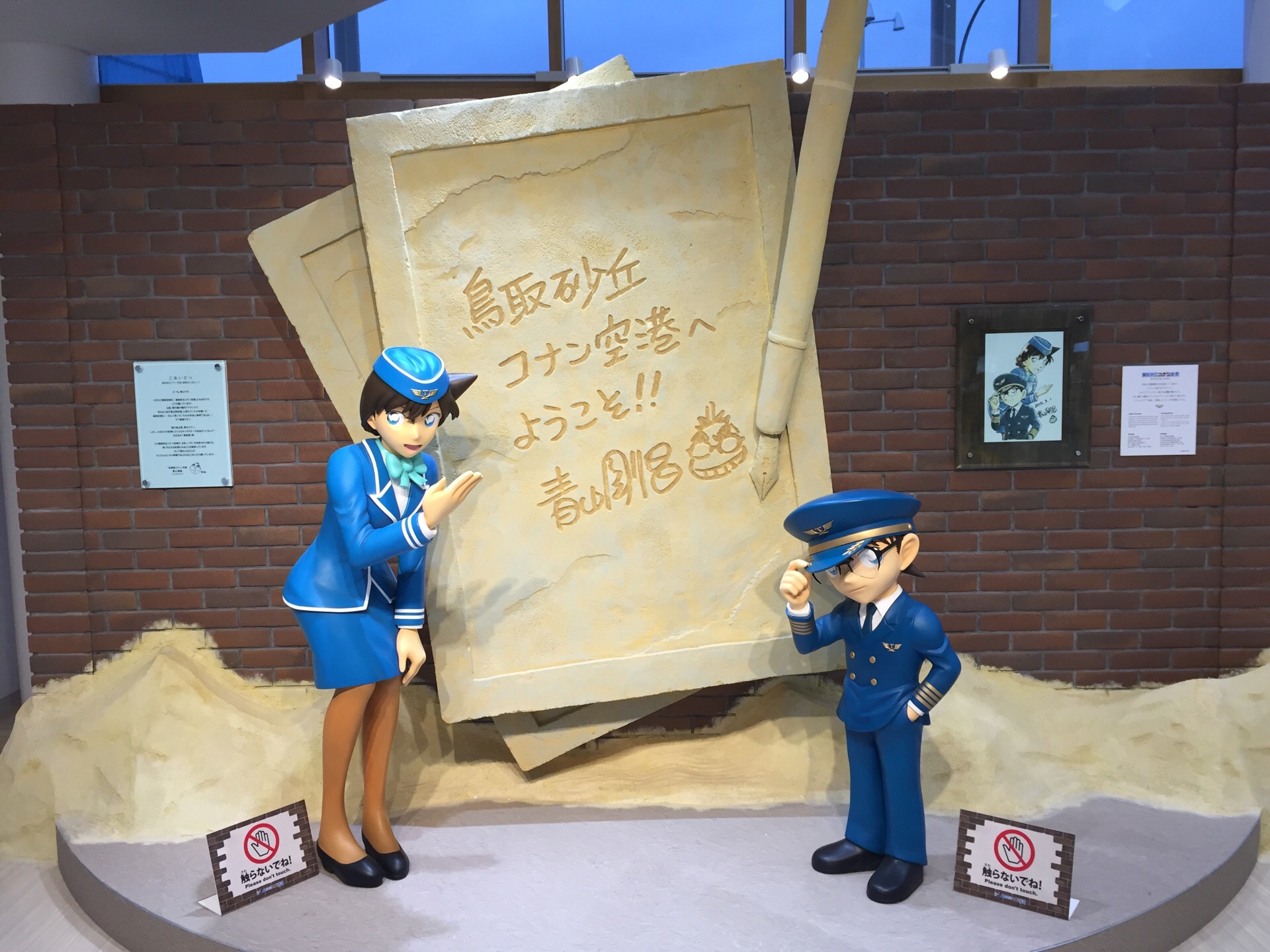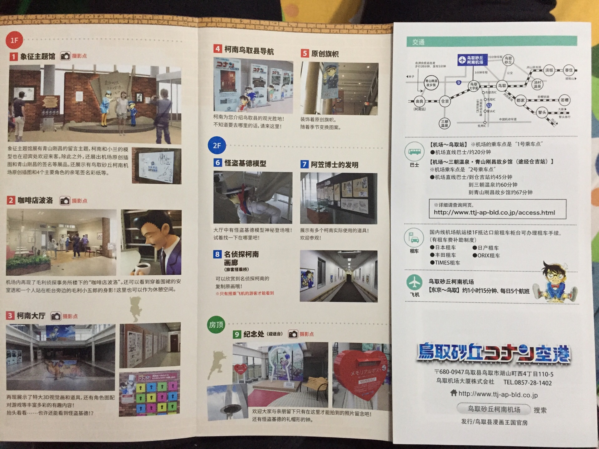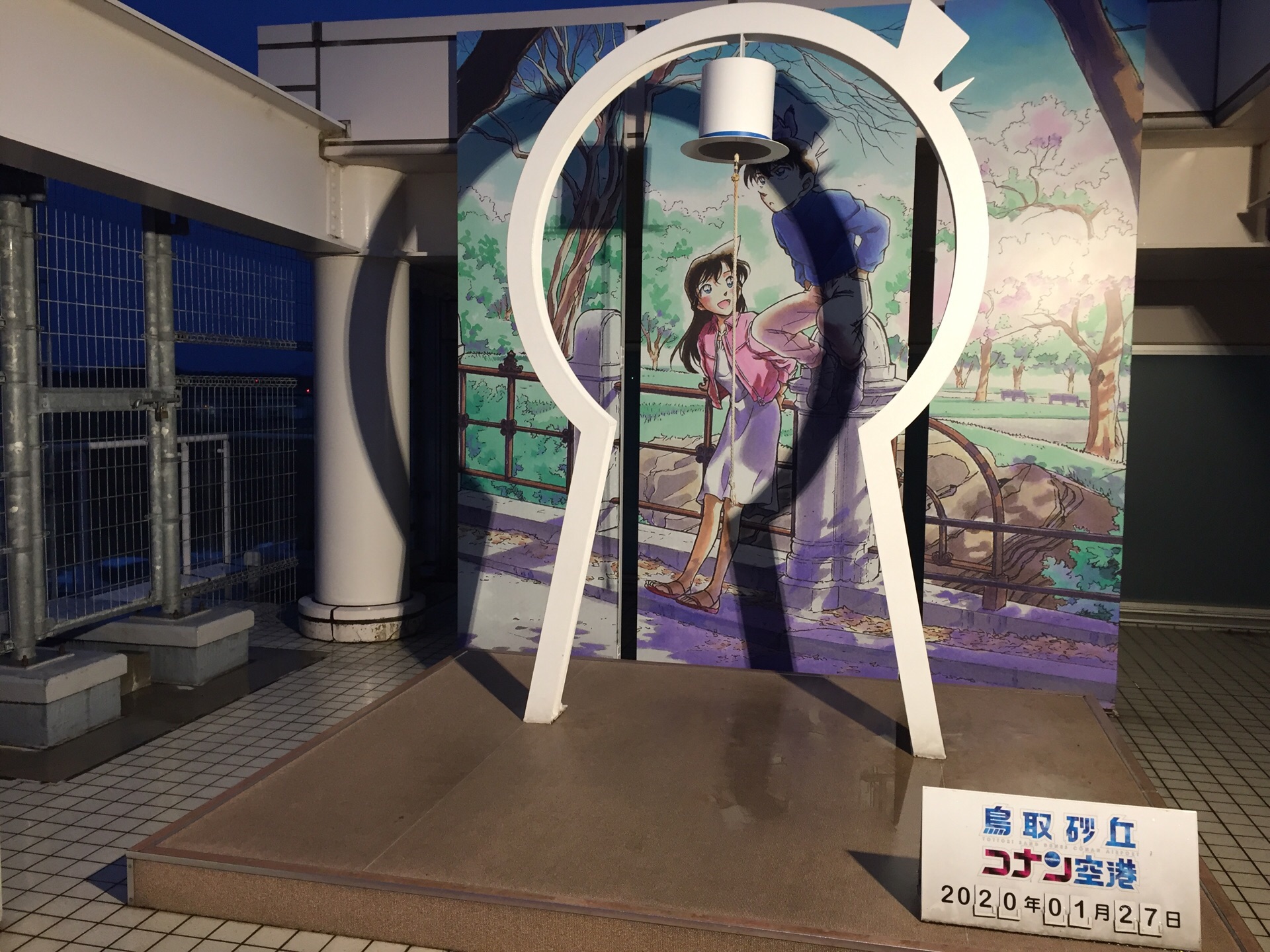 而且电车夜里也有往返鸟取的列车。鸟取站公交和电车都可以到。柯南朝圣地,整个机场全是柯南元素