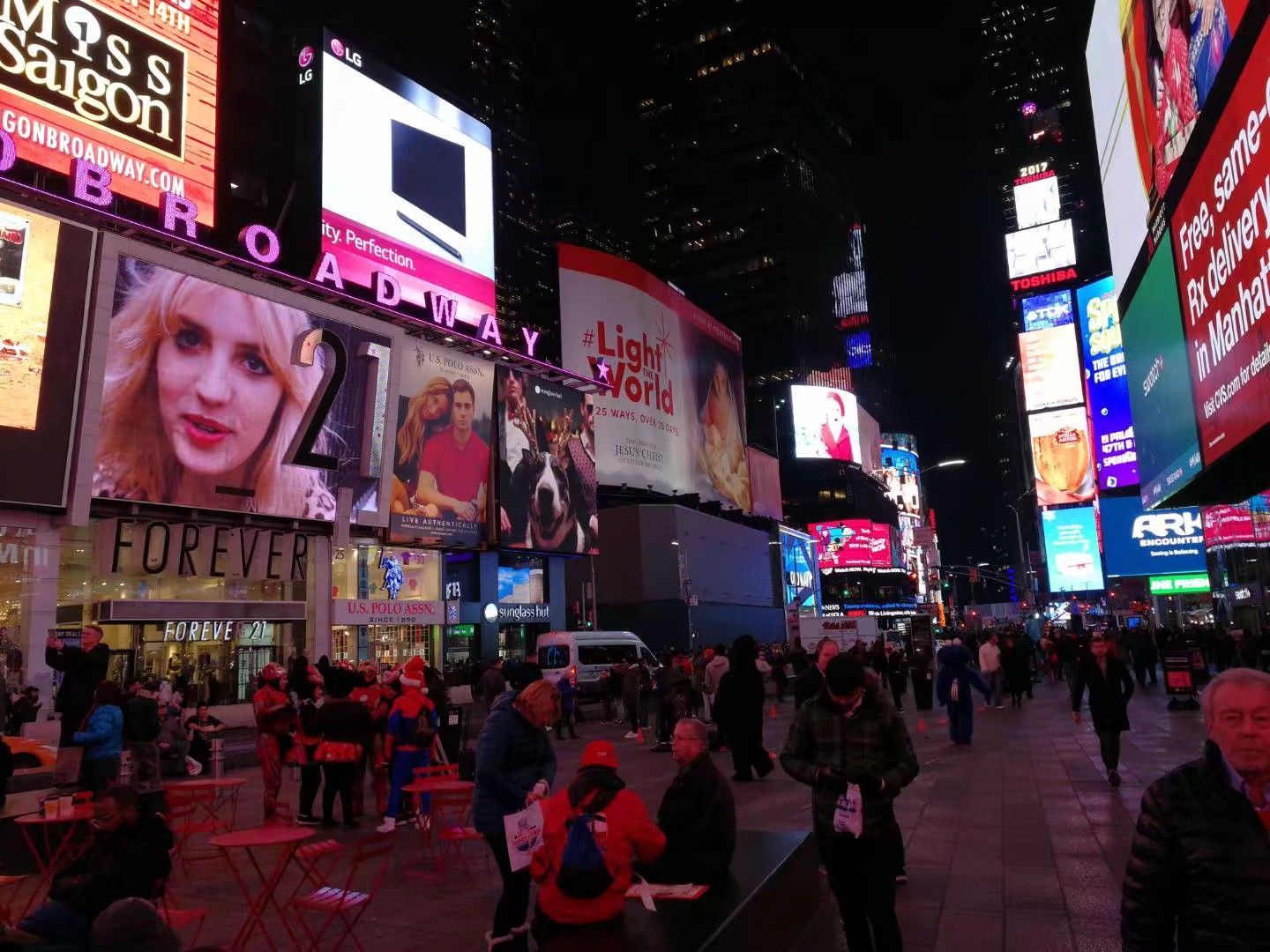 网友2020-02-18这里的人流量非常大,到处是摩天大楼,大屏幕等,夜晚时分去的时代广场,巨大的电子屏幕的广告非常显眼纽约的中心,时代广场举世闻名!这里的人流量非常大,到处是摩天大楼,大屏幕等,夜晚时分去的时代广场,巨大的电子屏幕的广告非常显眼!