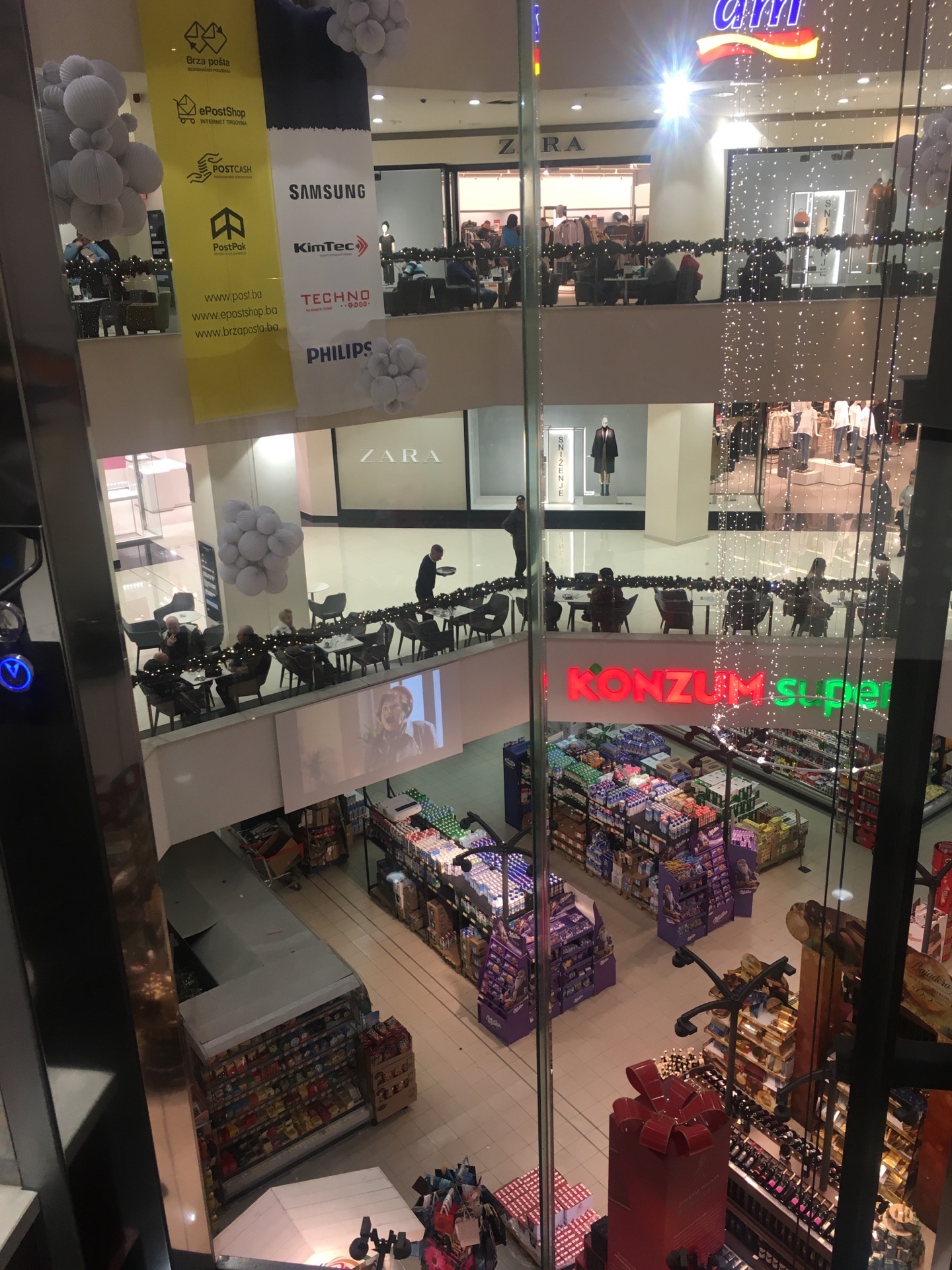 驱车去莫斯塔尔的路上突然想找一个商场逛逛,毕竟从萨拉热窝一路走来还没有去过什么大商场,网上看到这家商场体量还算大,就直接过来了... 商场一楼有麦当劳,但是木有香辣鸡腿堡... 楼上很多快时尚品牌,价钱和大陆差不多,逛逛还不错...