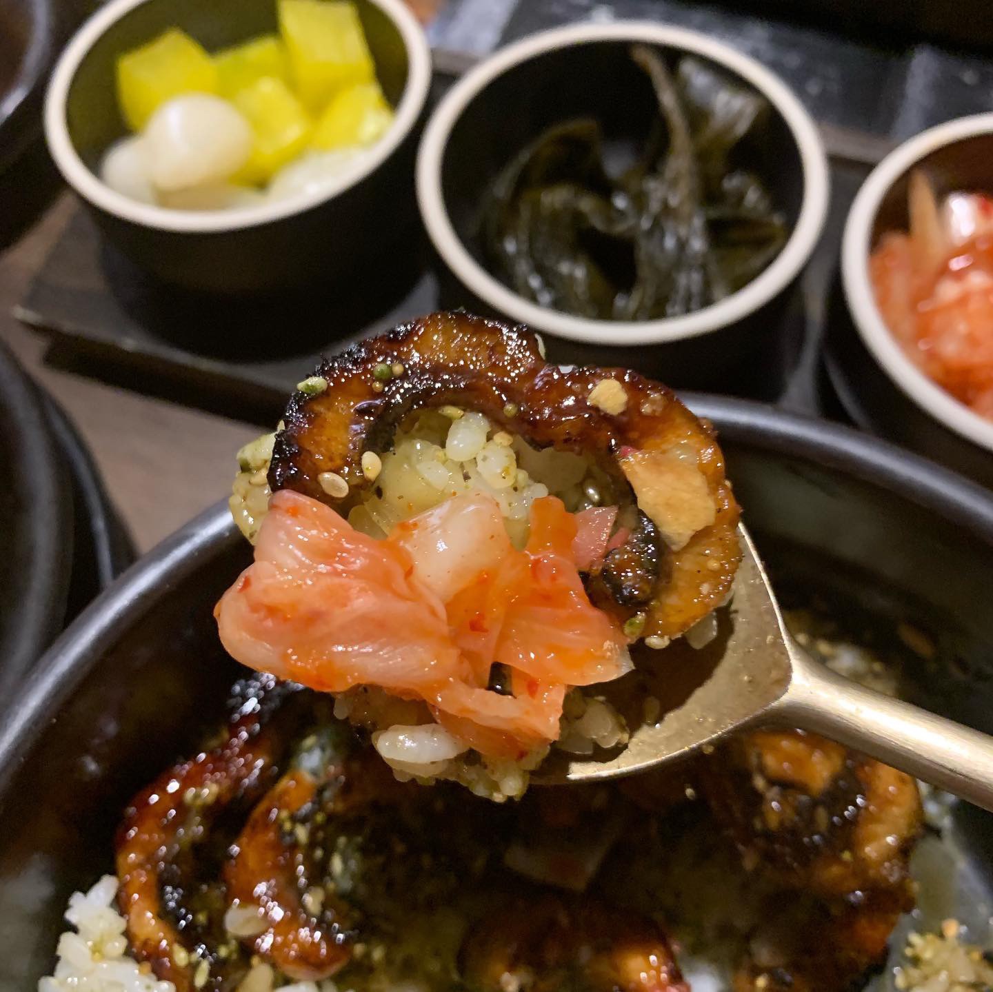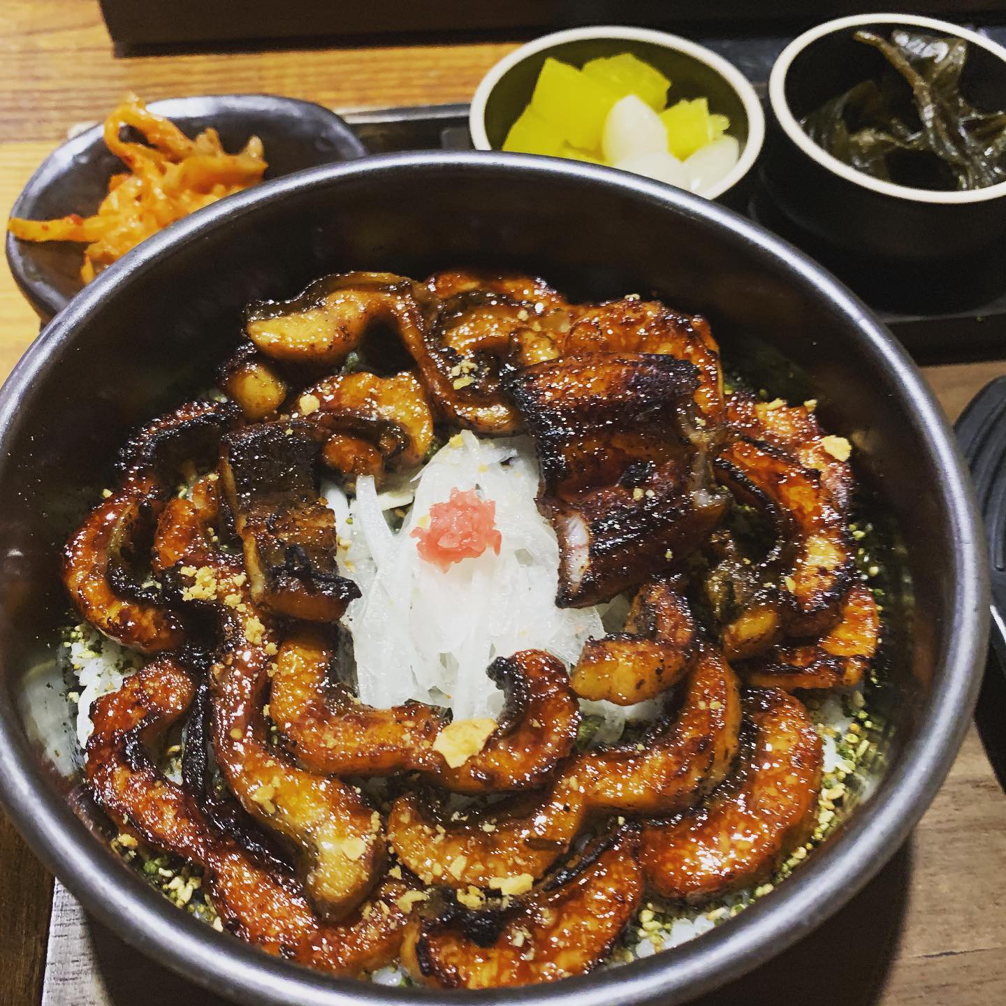 点了肥肥鳗鱼盖饭定食~ 新鲜的鳗鱼吃起来不会很腥~ 鳗鱼真的不要太好吃~ 鳗鱼是现烤的