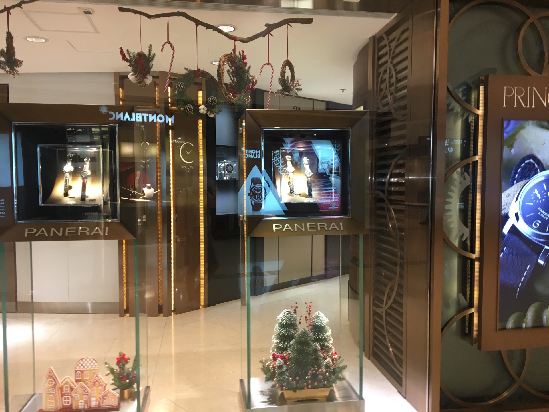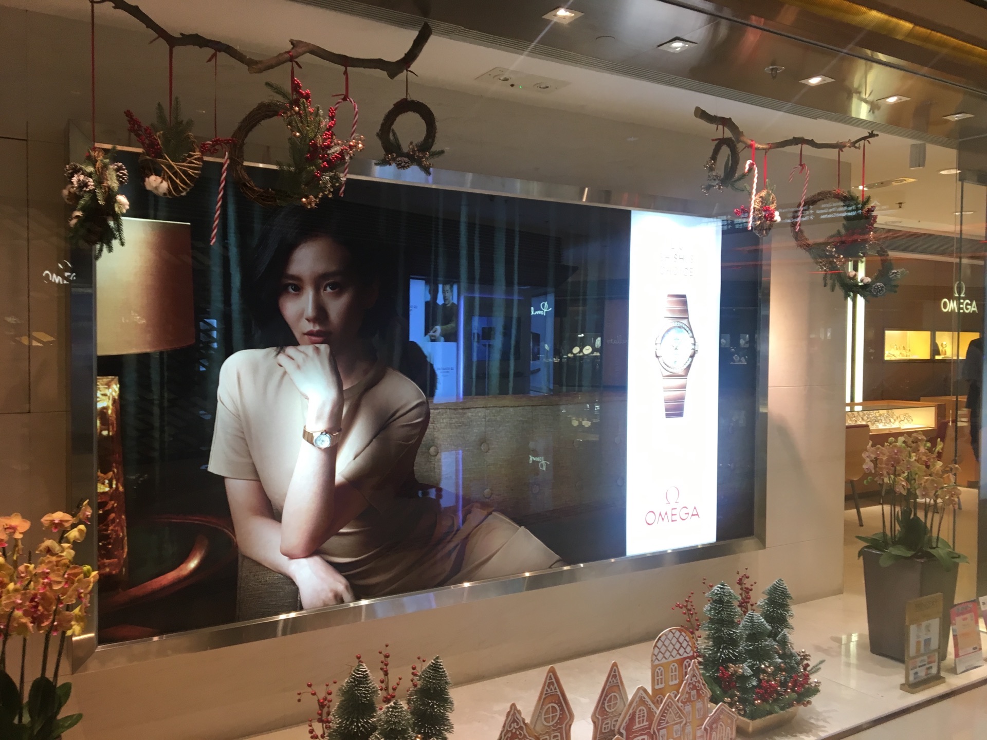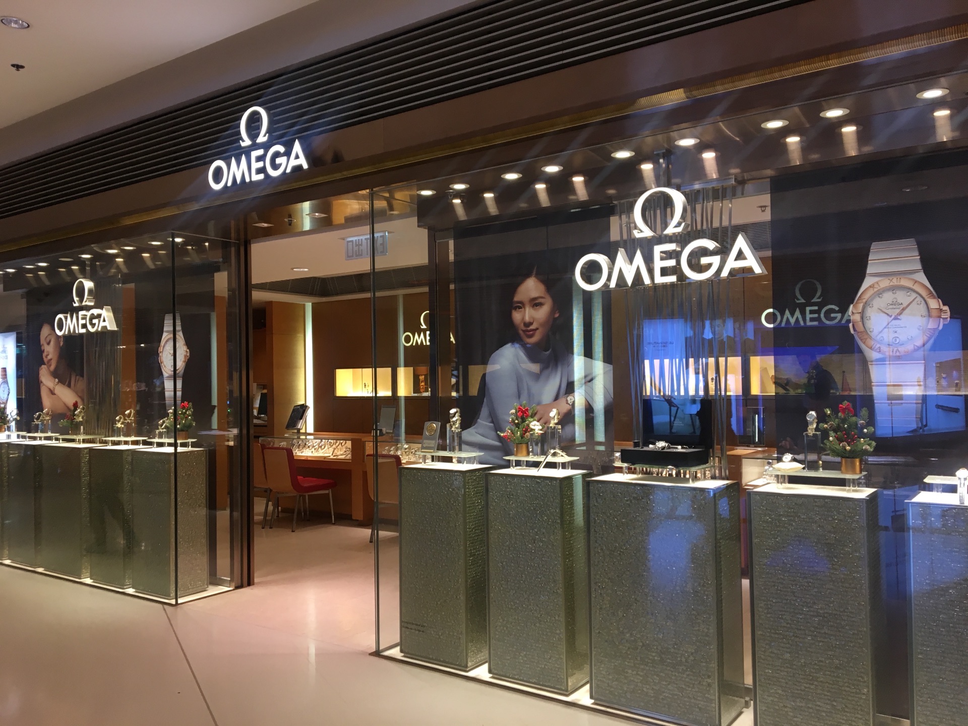 在太子珠宝钟表的店里,大幅的广告是代言人刘诗诗,手腕上展示的是欧米伽的手表。太子珠宝钟表正如其店名,同时代理了世界顶级的珠宝首饰和钟表品牌,这里面就包括了宝玑、肖邦、江诗丹顿、卡地亚、伯爵、爱彼表等等。东西很贵,店铺的环境和服务当然是相当的好,购物的体验就是舒心。