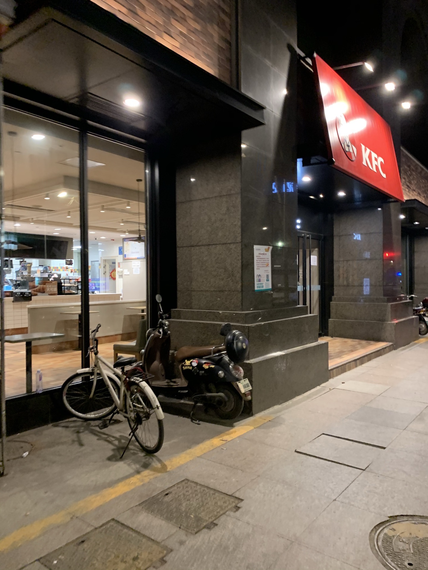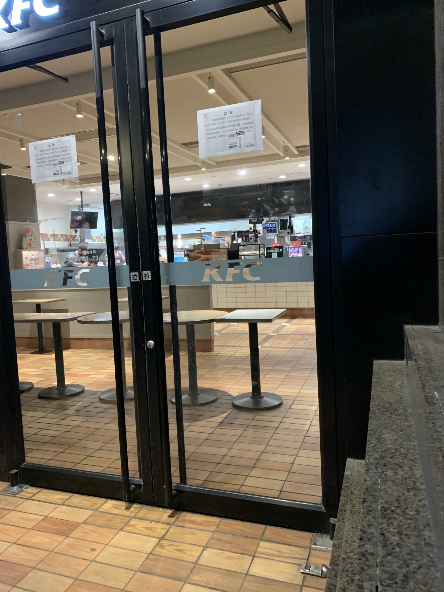 在金润发购物广场的一楼有一家KFC,其中一个门是在购物广场内,另一个门则开在学府路上。特殊时期,金润发大部分都在停业状态。而这家KFC现在也只是仅限外卖。就有人在门口扫码点单,而后店里面做好后,送到门口,顾客接上食品带走。特殊的时候,有了这种较特别的方式。不过,看了下相关可点餐的内容,还是比较丰富的。