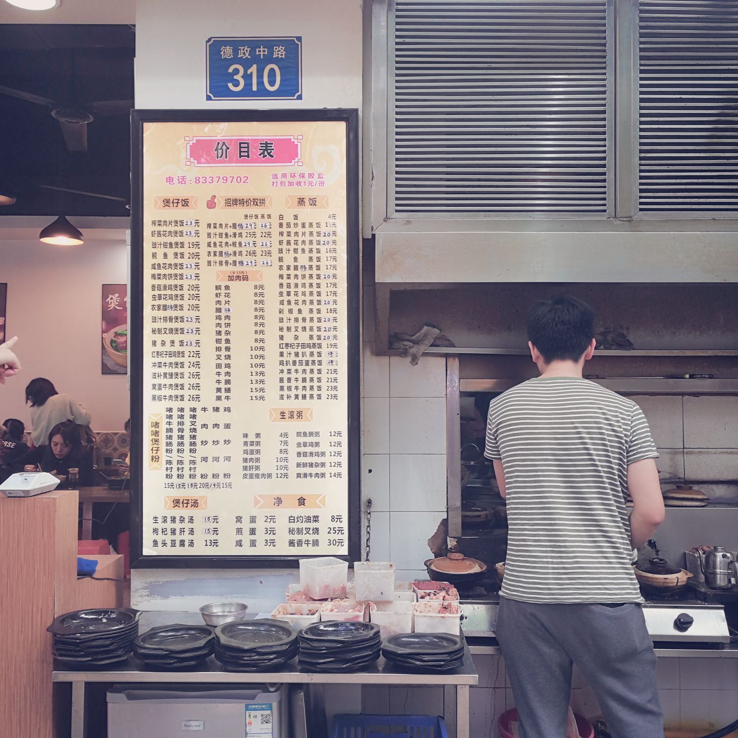 没错,广州遍地都是美食。但如果想尝到阿爷阿嫲碎碎念的正宗老广味道,就必须来像德政中路这样的地方才能如愿。广州人对美食的理解,并不是食材要多名贵,地方要多豪华,能吸引食客念念不忘,『食过返寻味』的美食,才是真正的美食。 如果没吃过广州的煲仔饭,就很难说自己已经尝试过老广喜欢的地道美食。煲仔饭的常见配肉有牛肉、猪肉、腊味、排骨、草鱼、猪肝、塘虱等。 煲仔饭这种带着本地印记的美食,仍保留着老广们对美食味道的“原汁原味”的理解。 地点:陶园美食(德政中路) 详细地址:广州市越秀区德政中路310号 人均消费:25~35元 交通攻略:地铁一号线——“农讲所”站 态度决定未来//璞石::天祺