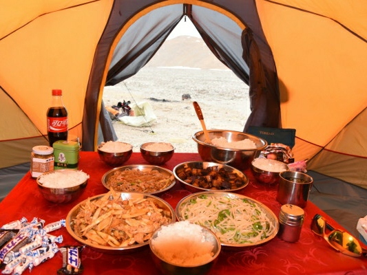 我们终于抵达5050米的玉珠峰登山大本营,营地的帐篷里特意准备了丰富的水果和坚果