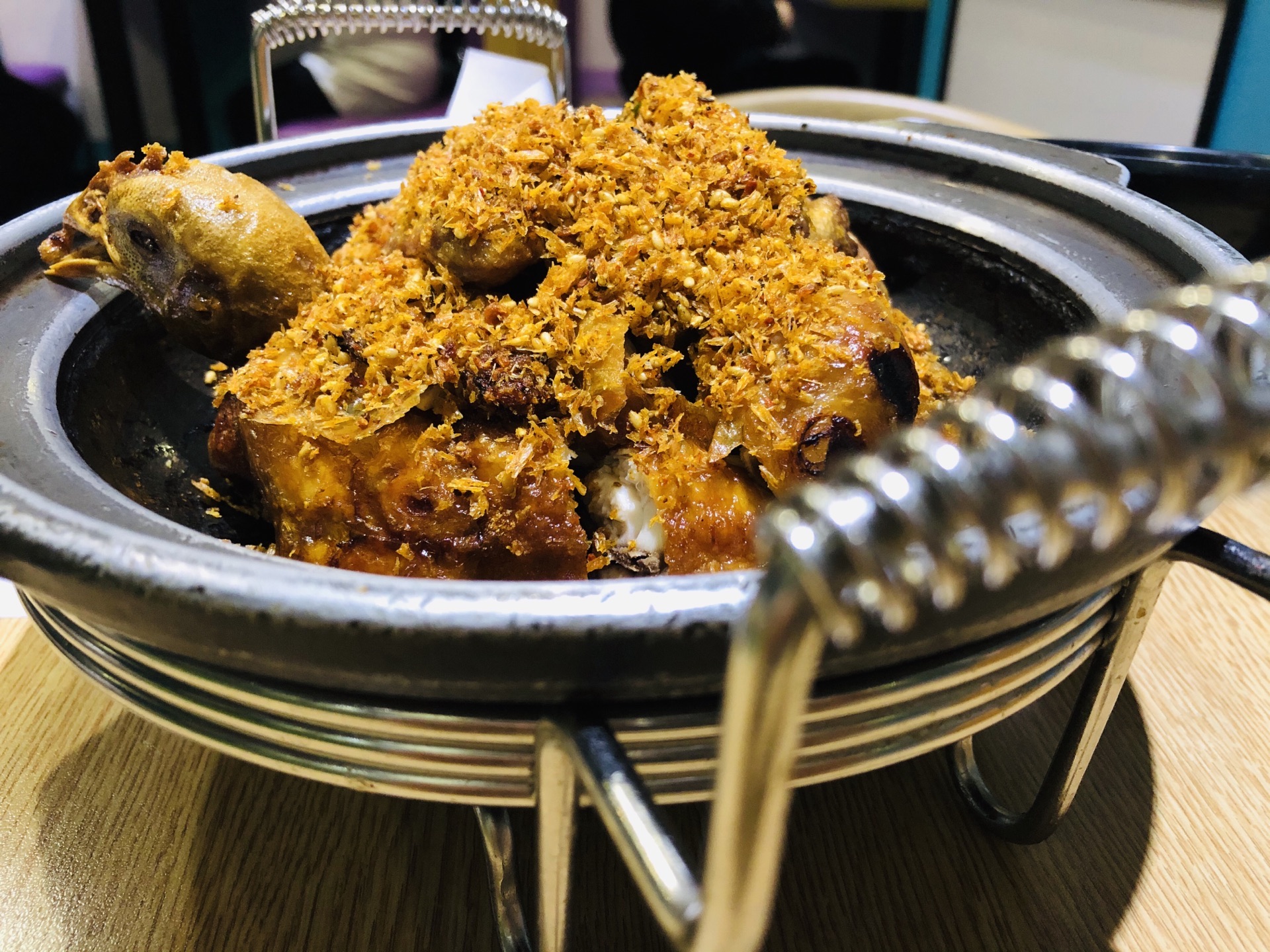 环境: 紧挨夫子庙风景区 如果来夫子庙附近逛或者住在附近 可以来尝试下 水游城地下二层 晚餐时间用餐的人还是很多 两个推荐菜一份米饭一份饮料60+ 这个价格在这地段还是挺划算的 「香辣美容蹄」肉质软嫩 虽有辣椒但不是很辣 味道蛮好,就是分量少了些 「大漠风沙鸡」整只鸡酥香入味 有点烤鸡的意思,又不会太油腻