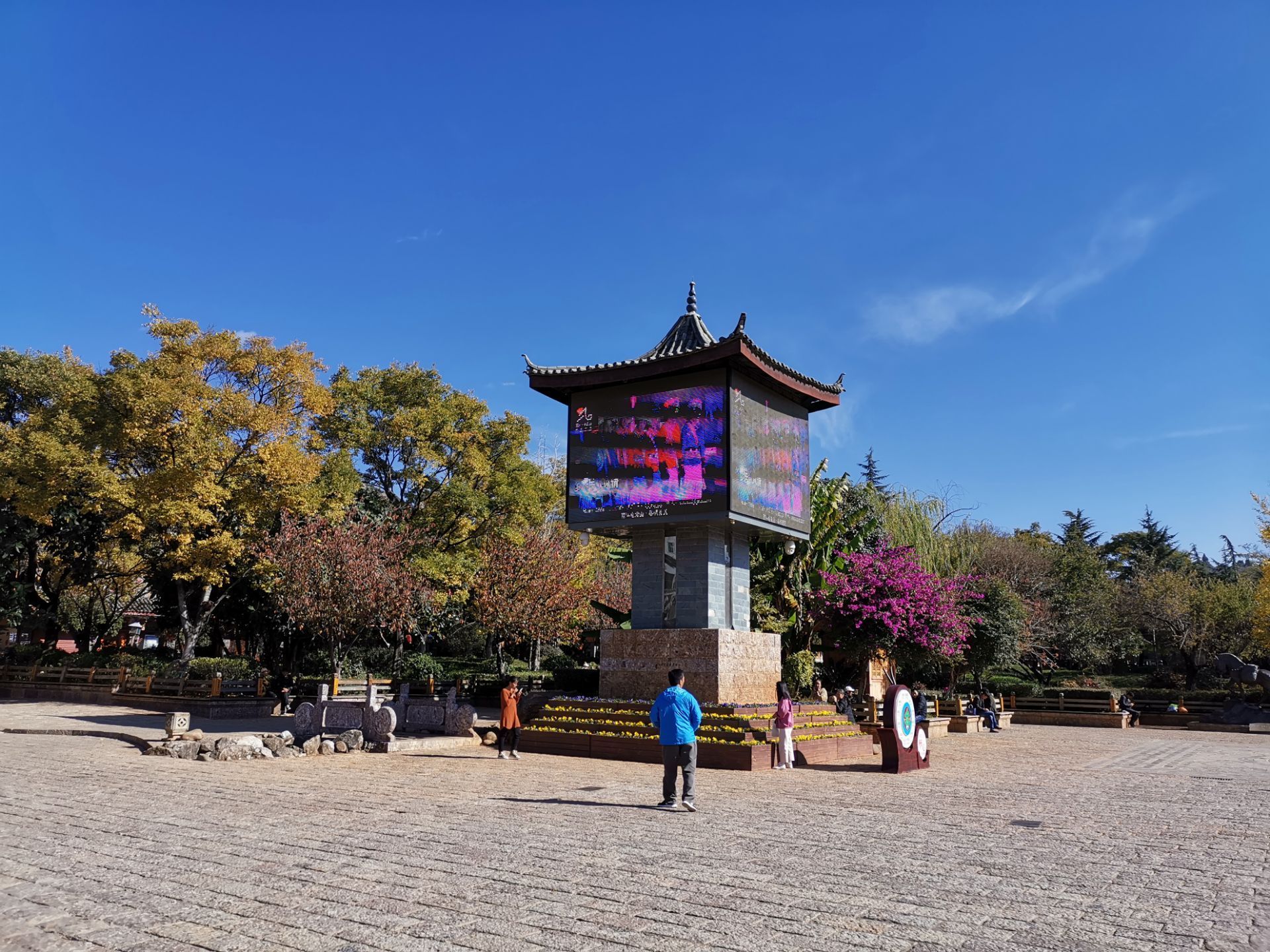 人很多是古城里游客必去的地方。丽江古城大水车广场旁有一个许愿风铃群,大广场旁边很显眼