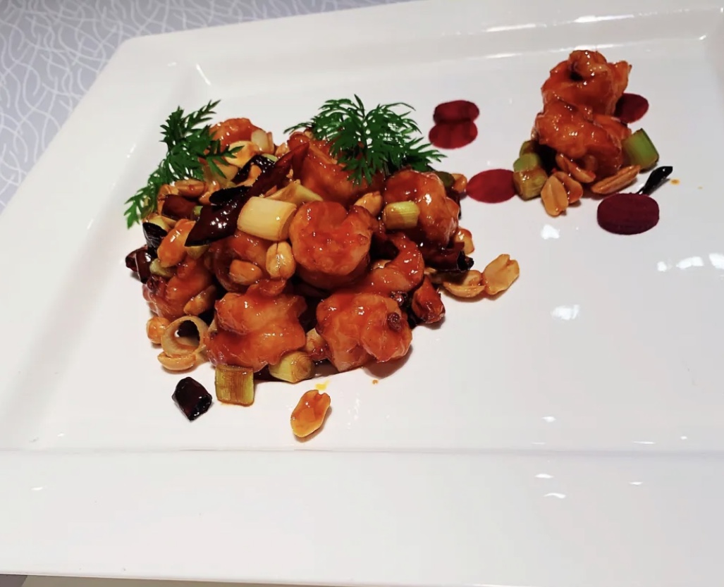 料汁也很好,宫保虾球,改良版的川菜,味道微辣,酸甜,虾球也入味了,山楂鹅肝也是一次不错的尝试,...