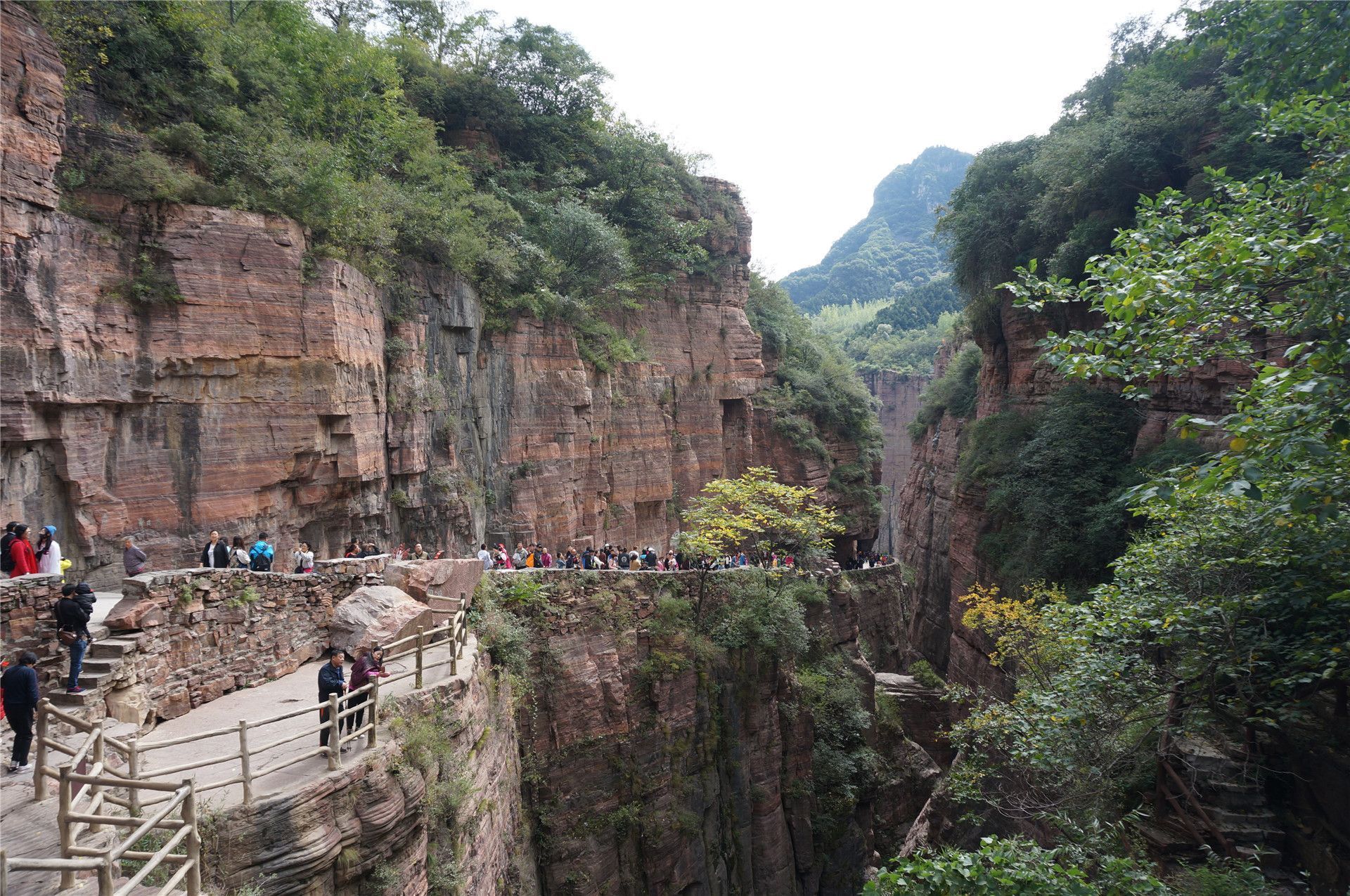 通常要在山顶上的湖泊才配得上这个称号,而万仙山的天池,位置海拔甚至比郭亮村还要低。不过它正处于郭亮隧道的终点,当人们气喘吁吁爬上来的时候,确实有种怡然的感觉。天池的面积很小,但人们为修建所下的功夫可不小,其实就是在山谷顶端筑坝,最终形成一个颇为壮观的景致。此处有捷径通往郭亮隧道对面的观景台,台阶有点陡峭上下得小心。