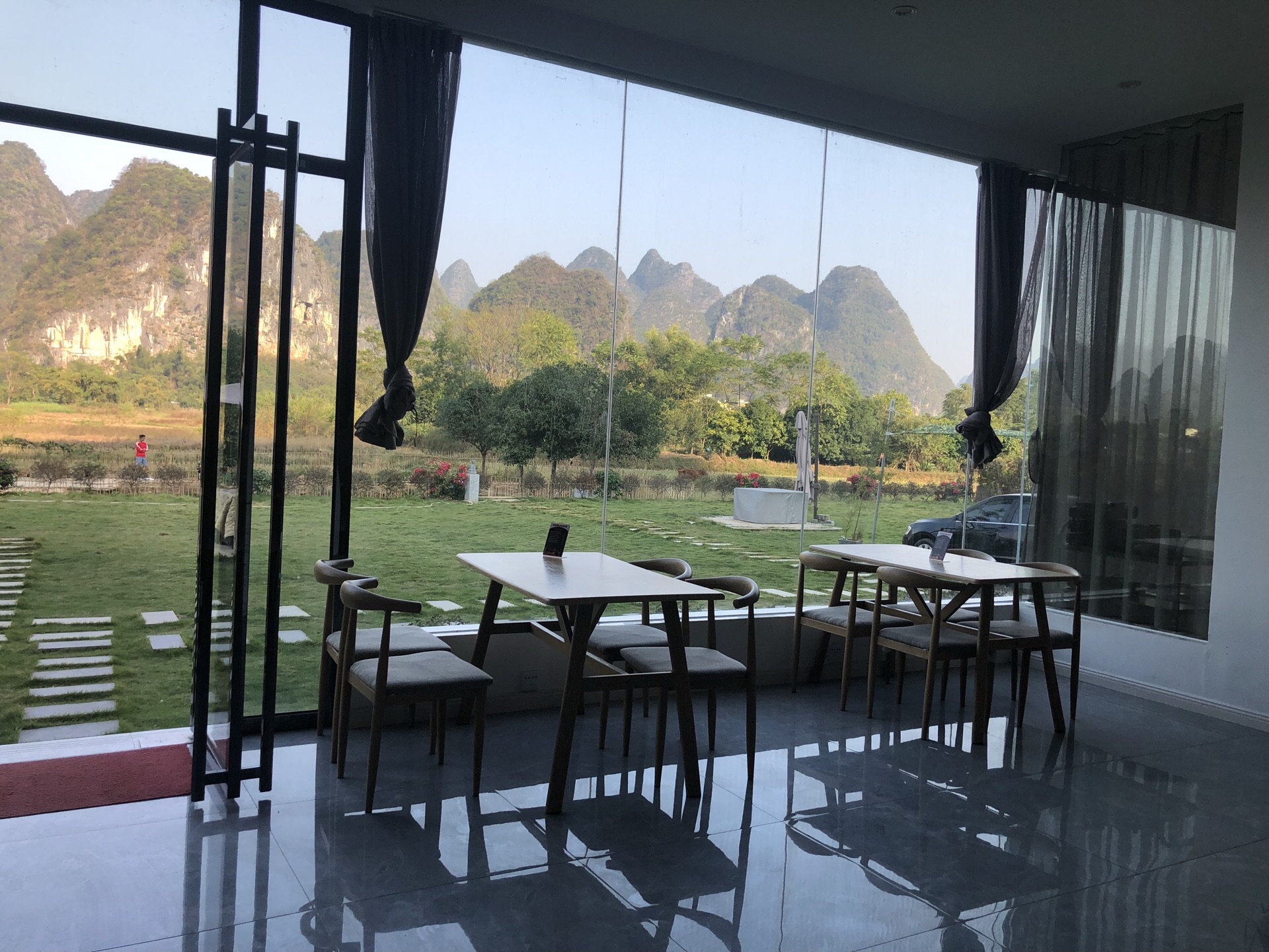 来阳朔住了两天,非常喜欢这里的环境,住宿不错,餐厅也是棒棒滴,服务员态度更加热情,在餐厅吃的自助早餐也很完美呢,全天的下午茶都是免费的,这家啤酒鱼做的很好吃,适合亲子,孩子也吃的很开心,价格会比较贵,有网红天空之镜,景色很好。山水风光在眼前,好赞!