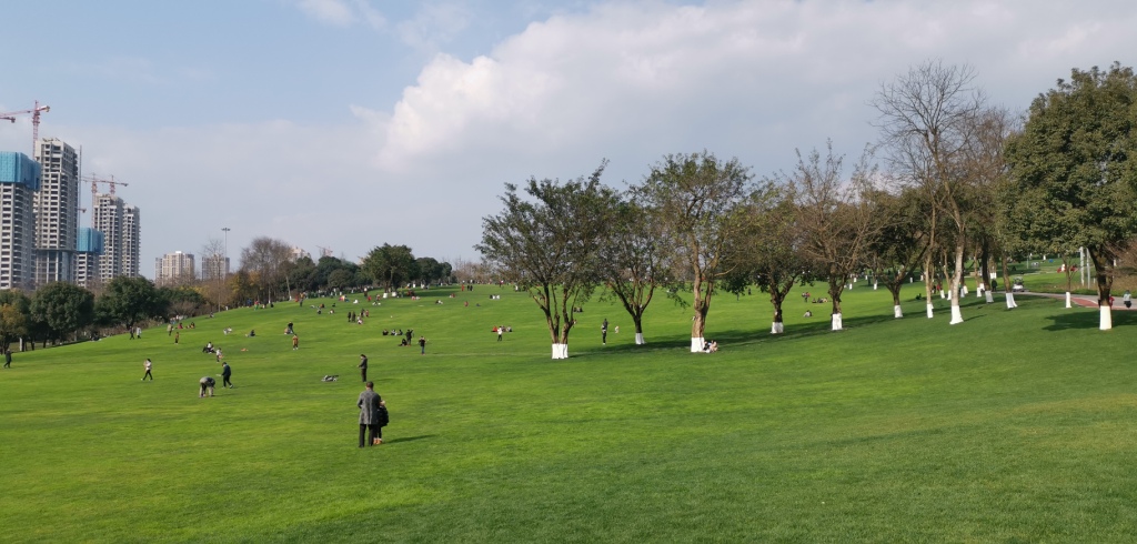 重庆中央公园是亚洲第一大的城市中央公园,公园内有很大一个草坪,有很多人在草坪上坐着晒太阳,还有...重庆中央公园是亚洲第一大的城市中央公园,公园内有很大一个草坪,有很多人在草坪上坐着晒太阳,还有人在放风筝。中央公园位于渝北区,有地铁站到这里。