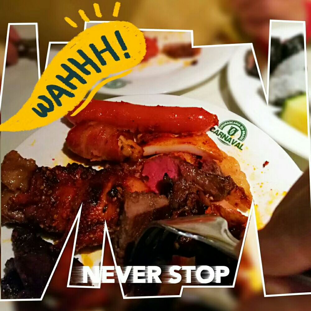 烤肉味道很好!来到这里就是直奔烤肉的,所以,只要胃口够大,就尽情吃吧。食肉推崇者的最爱食肉推崇者的最爱。来到这里就是直奔烤肉的,所以,只要胃口够大,就尽情吃吧。服务员每隔一段时间会把烤好的食物送到餐桌。另外,公共餐台还有一些炒菜、甜点、水果、酒水,可以自取。烤肉味道很好!