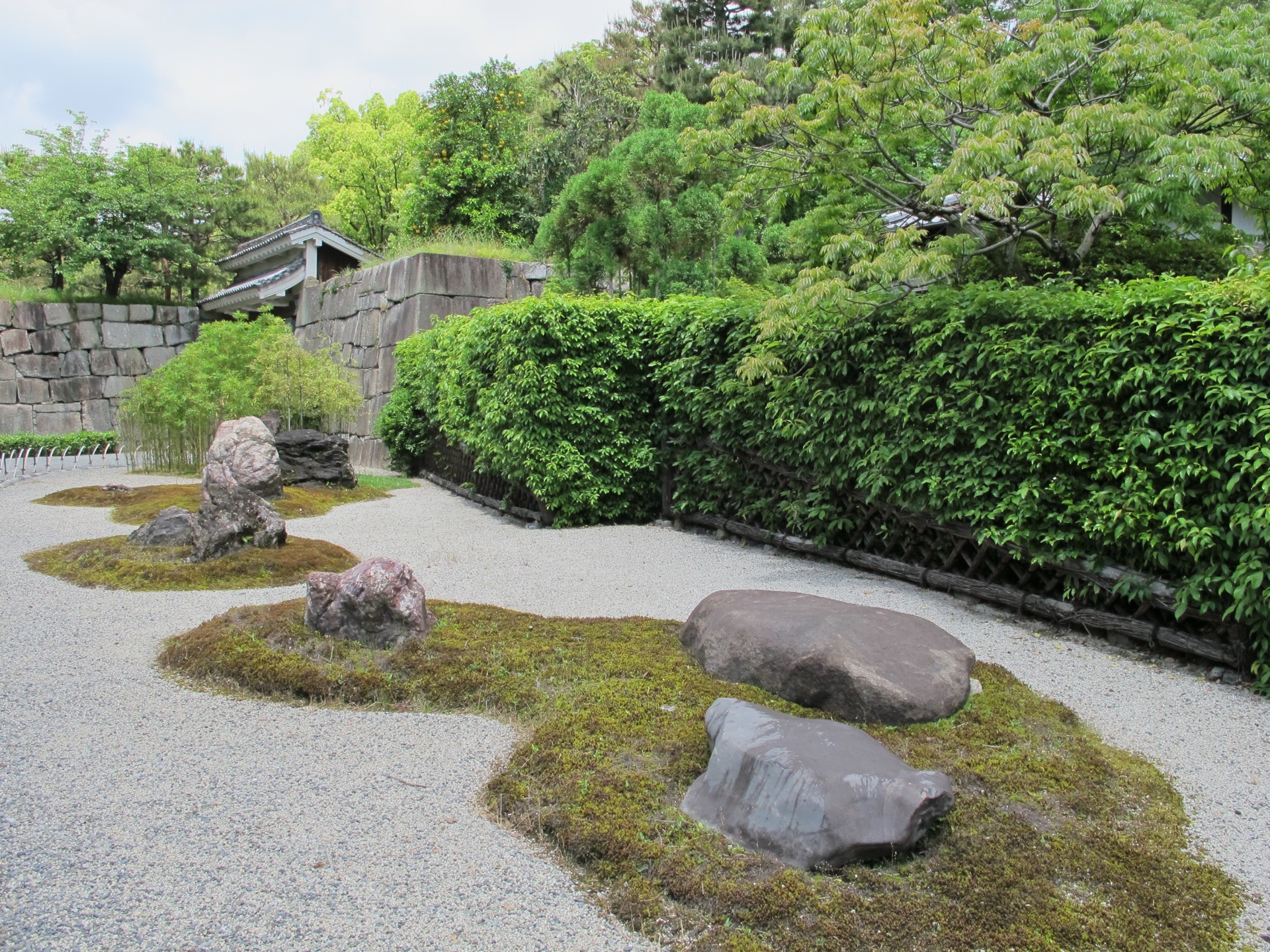 二之丸庭院,在二条城城廓与本丸御殿护城河之间,是表现传说中神仙的居处蓬莱仙境的一个花园二之丸庭院,在二条城城廓与本丸御殿护城河之间,是表现传说中神仙的居处蓬莱仙境的一个花园。修剪的相当的精致的一个庭院,里面水池、小岛,还有枯山水石。春天的时候,这里是赏樱的圣地。