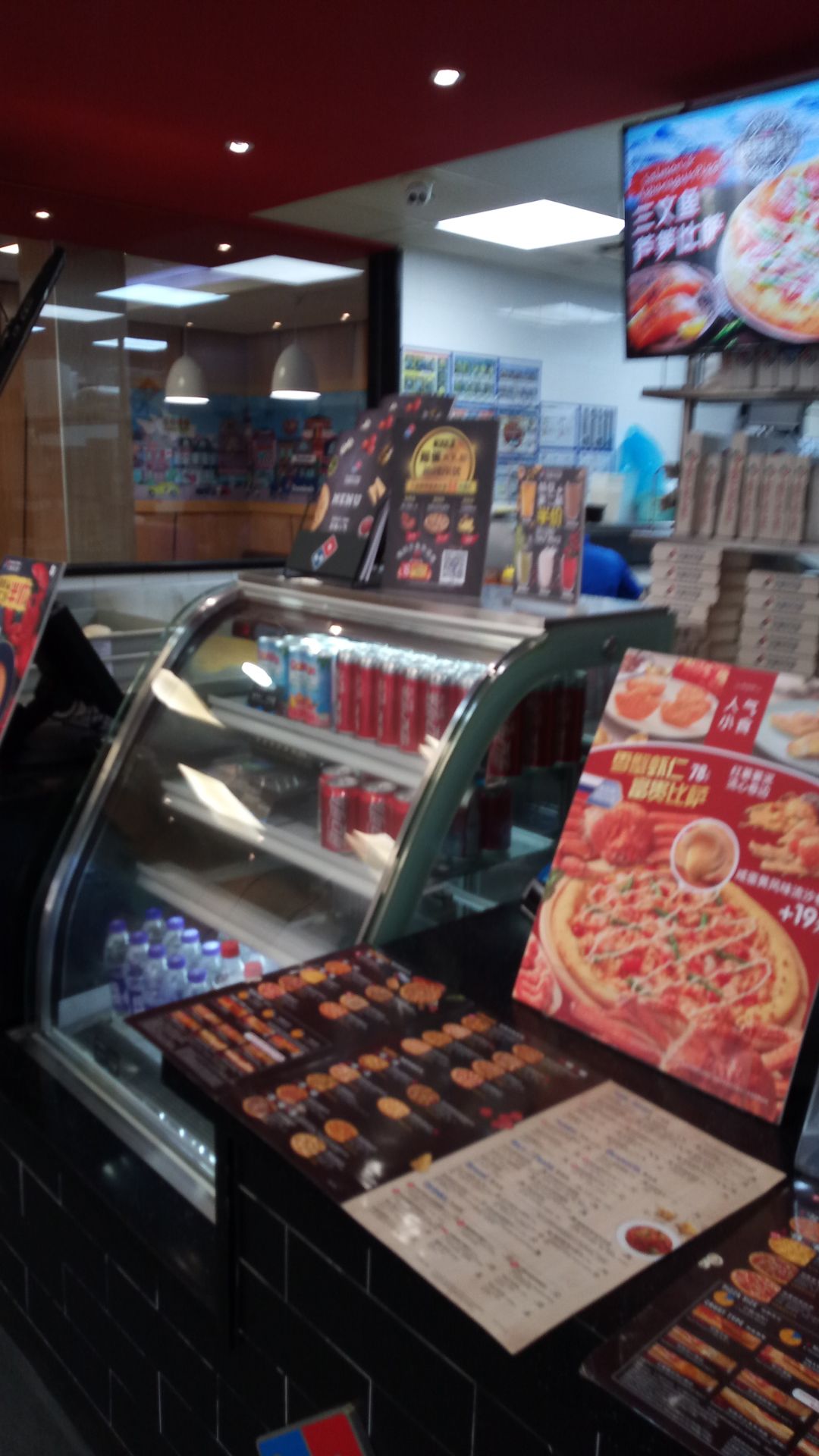 这家店本来是有挺大的用餐区的,但是由于现在疫情的影响,主要都是以外卖为主,这里的外卖员非常的多,应该有超过10人,而且我买的单子也非常多,现在网上有优惠,而且平时他还有一些小活动,可以通过做游戏来领取免费的蛋挞,所以生意还是不错的,我大概是中午去的,店员们还是挺忙的,基本上你预约完之后 到这里来花10分钟配完餐你就可以带走,服务态度非常的好。东西也很干净,在上海的披萨店当中应该算是比较不错的。