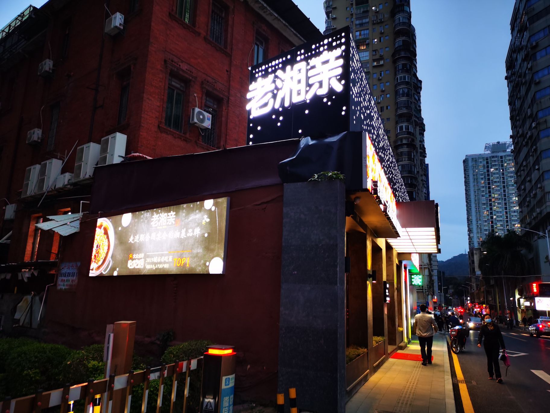 老湘亲·品鉴湘菜(新华路店)位于华侨酒店对面,下班后过去用餐。 餐厅面积不小,这次点了剁椒鱼头、脆脆下、玉米大骨汤、浓香玉米汁和米饭,总体感觉分量十足,剁椒鱼头有点偏辣。 人均大约100元,吃不完还可以打包哦。