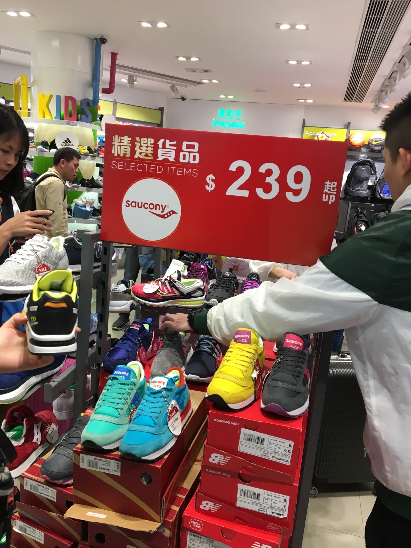 进到运动家的店里面,发现这里有好多品牌的运动鞋。原来1985年运动家就在旺角的花园街创业了,花园街也是香港最早的运动鞋一条街。从一开始运动家里面就有耐克、阿迪达斯、new balance、彪马,再后来取得了converse的代理商合作权,接着又是德国的健康凉鞋birkenstock,让产品线更加的多元化。