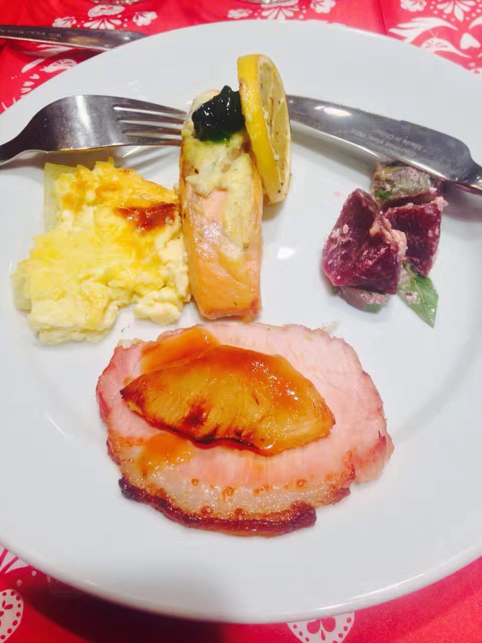 尝了一顿瑞典风味自助餐。虽然没有最喜欢的烟熏三文鱼「os:下次求增加」,不过有充足的羊排火鸡牛肉红酒供应,还是蛮更给力。餐前甜点很讨喜,反而不起眼的牛角包出乎意料好吃。中间遇到两位美女伙伴,果然爱吃的人品味都不错 小家伙,最近钢琴伴奏受到很多人欢迎,居然说她这餐她买单,这赞可以有!