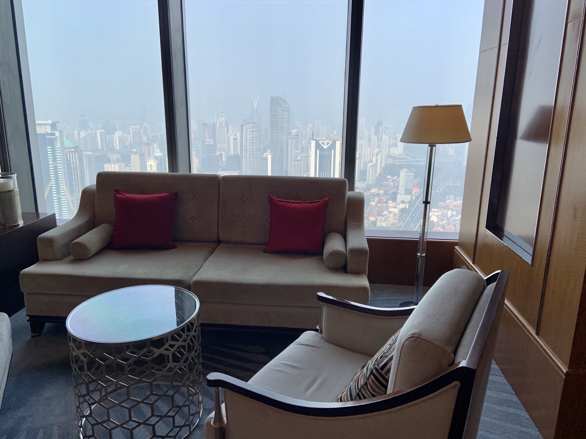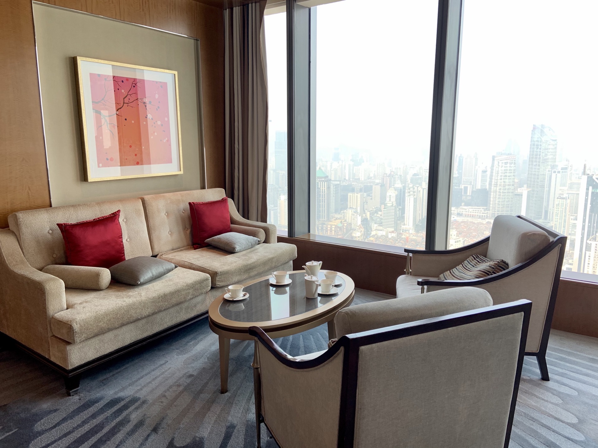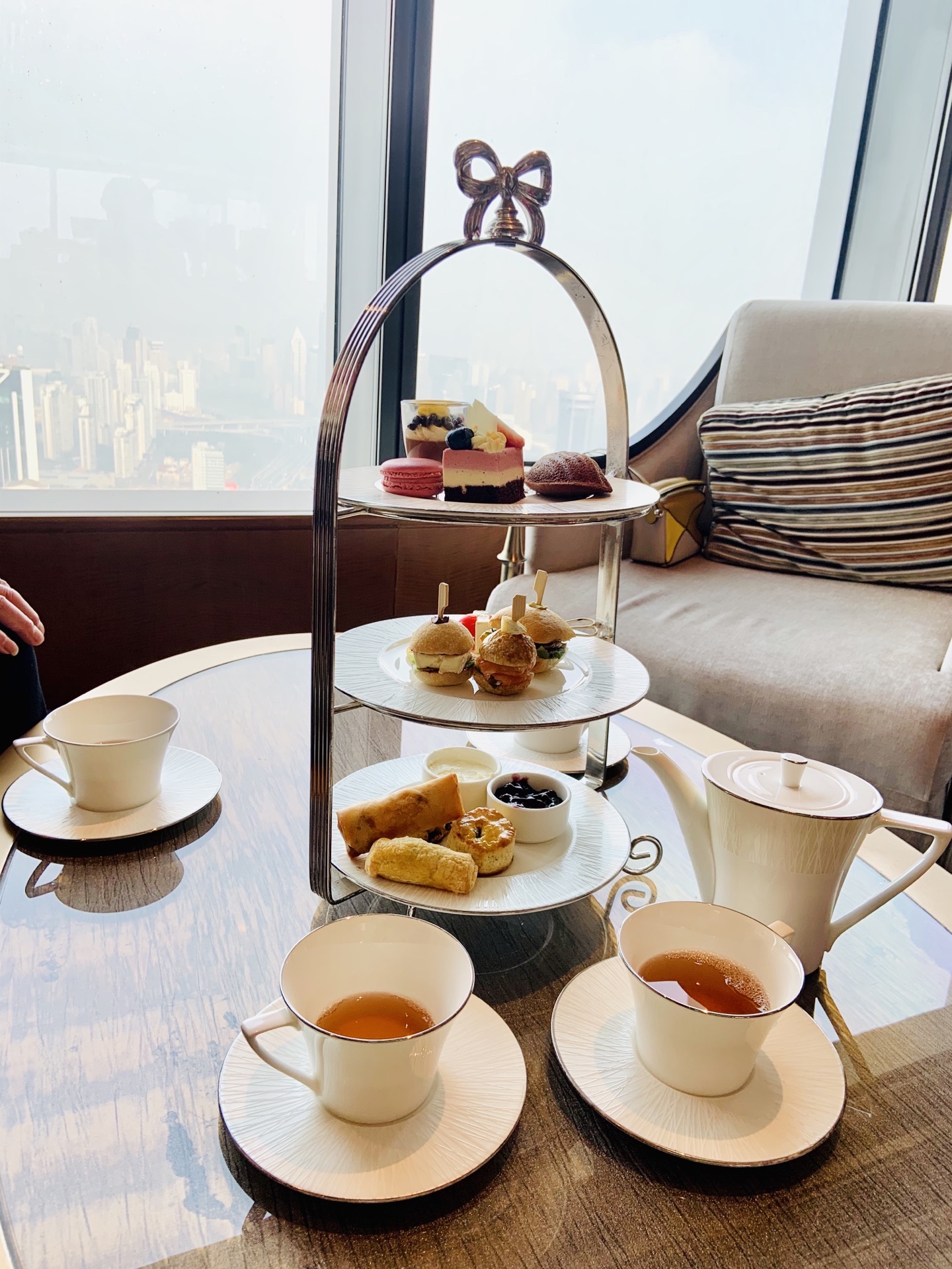 从静安嘉里出来,找不到门了,因为疫情缘故,开放的门没找到,就直接进香格里拉了~~然后就问了下55楼开业了吗,服务员说开了,就带公公婆婆上去坐坐~吃吃下午茶~ 因为不是住行政层的客人,所以自费188每人,另外收取10%服务费和6%增值税~ 一个三层高的塔,甜的、咸的都有~叉烧酥还是热乎的,马卡龙就一块~其他都一般般~~ 一位徐姓女子礼貌欠缺,跟人说话不带“你好”,还要求我把水壶给她加水~娟啊 你可长点心吧~