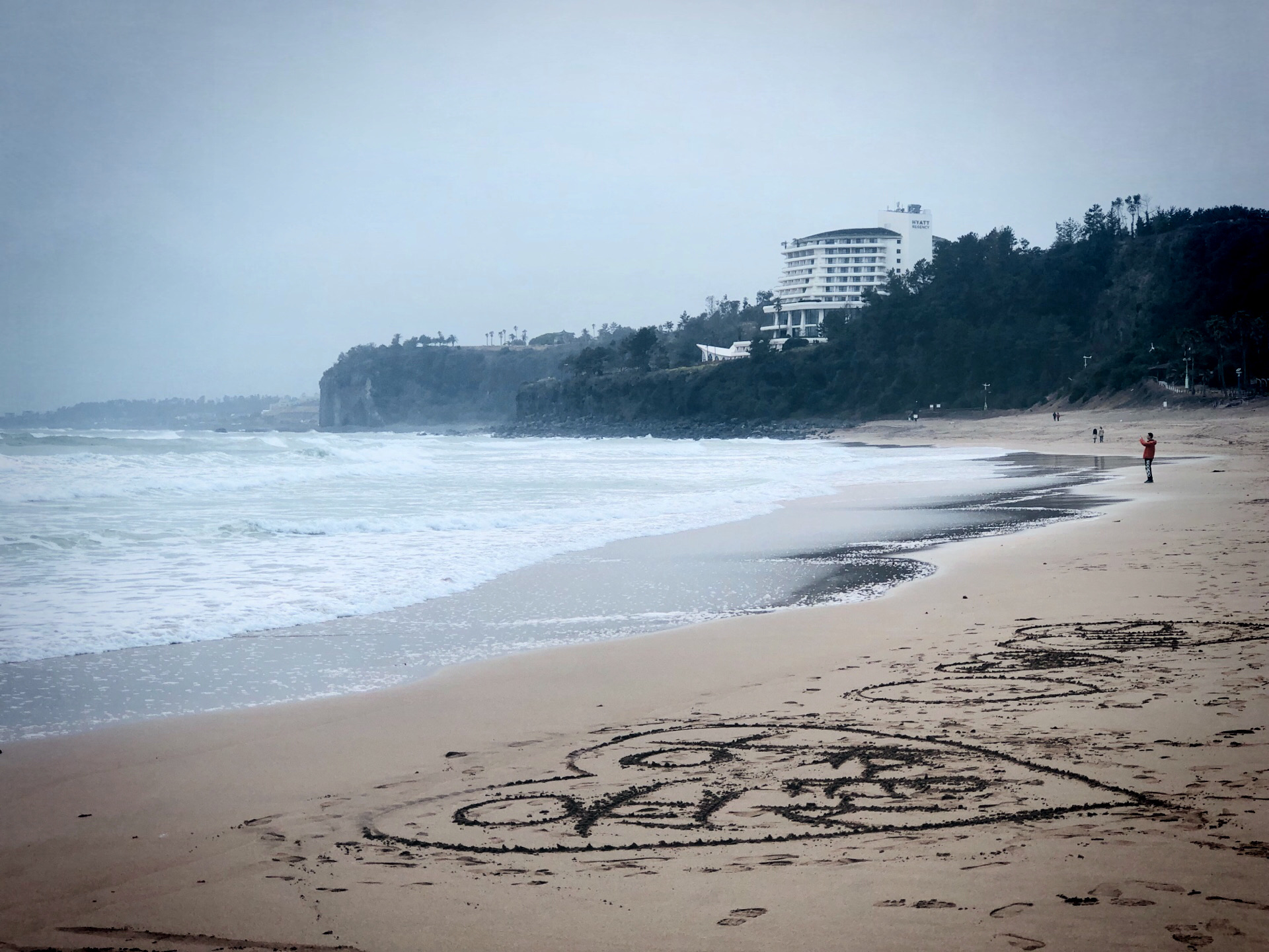 济州岛上最棒的浴场! [圆图钉]地理位置: 观光路72号,我也说不清楚在什么位置。 [强]特色推荐: 海鸥翱翔长空,细腻的沙滩看情侣携手漫步,健美的欧洲男士在冰冷的海水中玩冲浪。妈妈带孩子走在沙滩上逮小虾小螃蟹,孩子玩的不亦乐乎,妈妈露出了会心的笑容~虽然海风巨大,但眼前的一幕却是这般的温暖、和谐~ [图钉]实用tips: 注意安全。