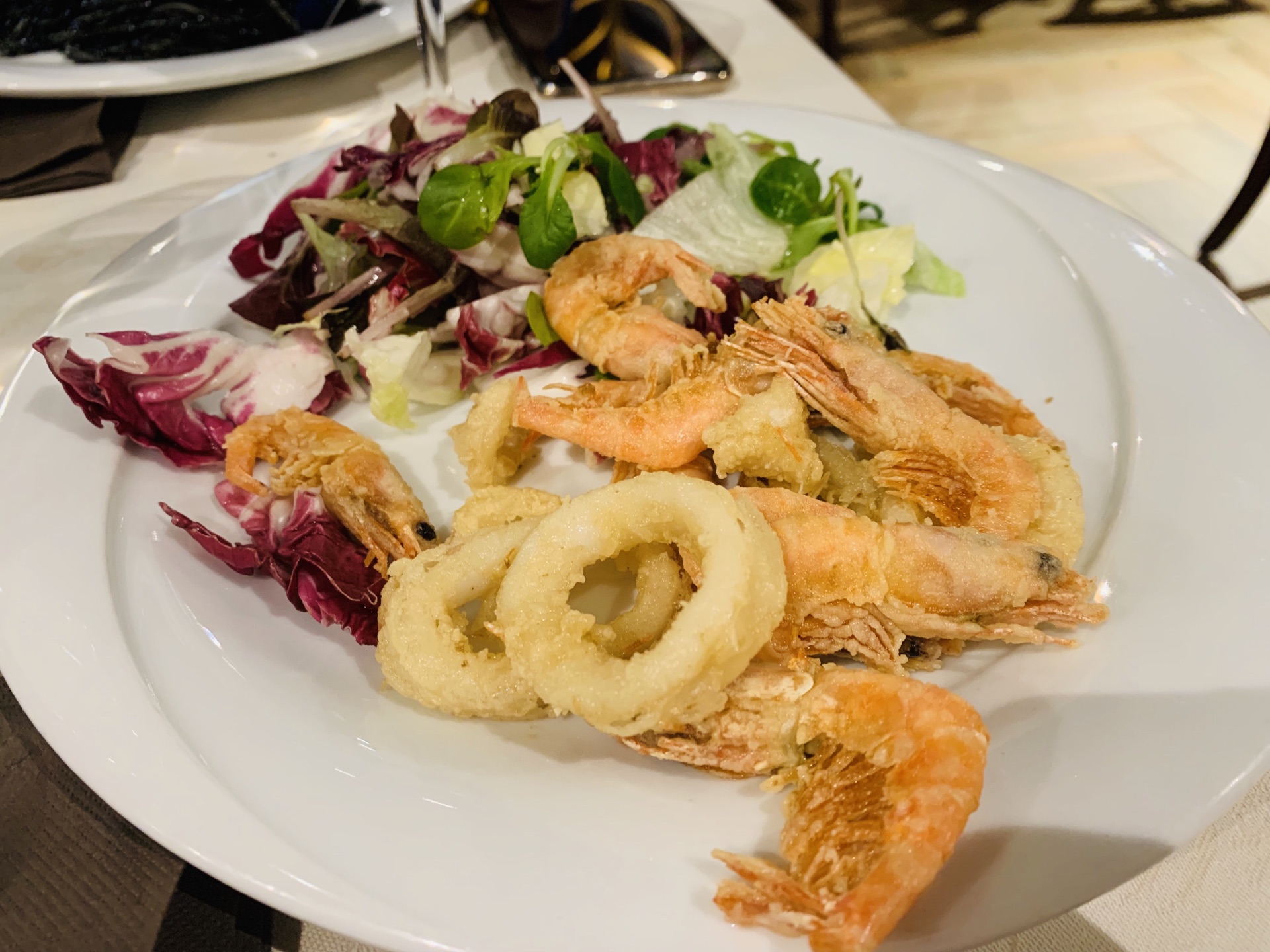 ...每人一大盘 而且虾和鱿鱼也很新鲜 甜点提拉米苏也是超级棒的 绝对可以代表当地的水准了 好吃不腻店里环境不错 感觉很优雅 没想到跟团游还能来这样的餐厅用餐!炸海鲜味道很赞 每人一大盘 而且虾和鱿鱼也很新鲜 甜点提拉米苏也是超级棒的 绝对可以代表当地的水准了 好吃不腻!