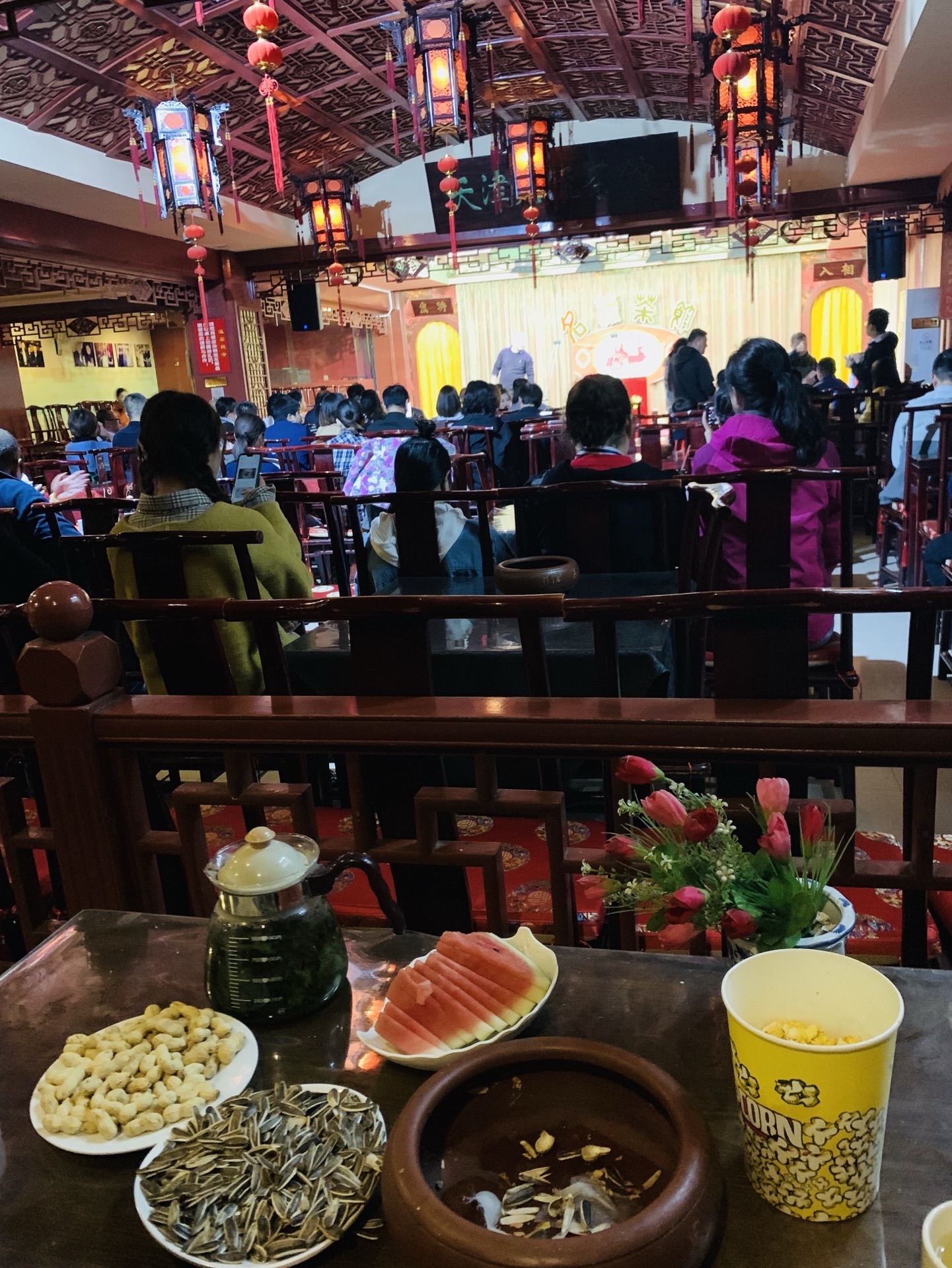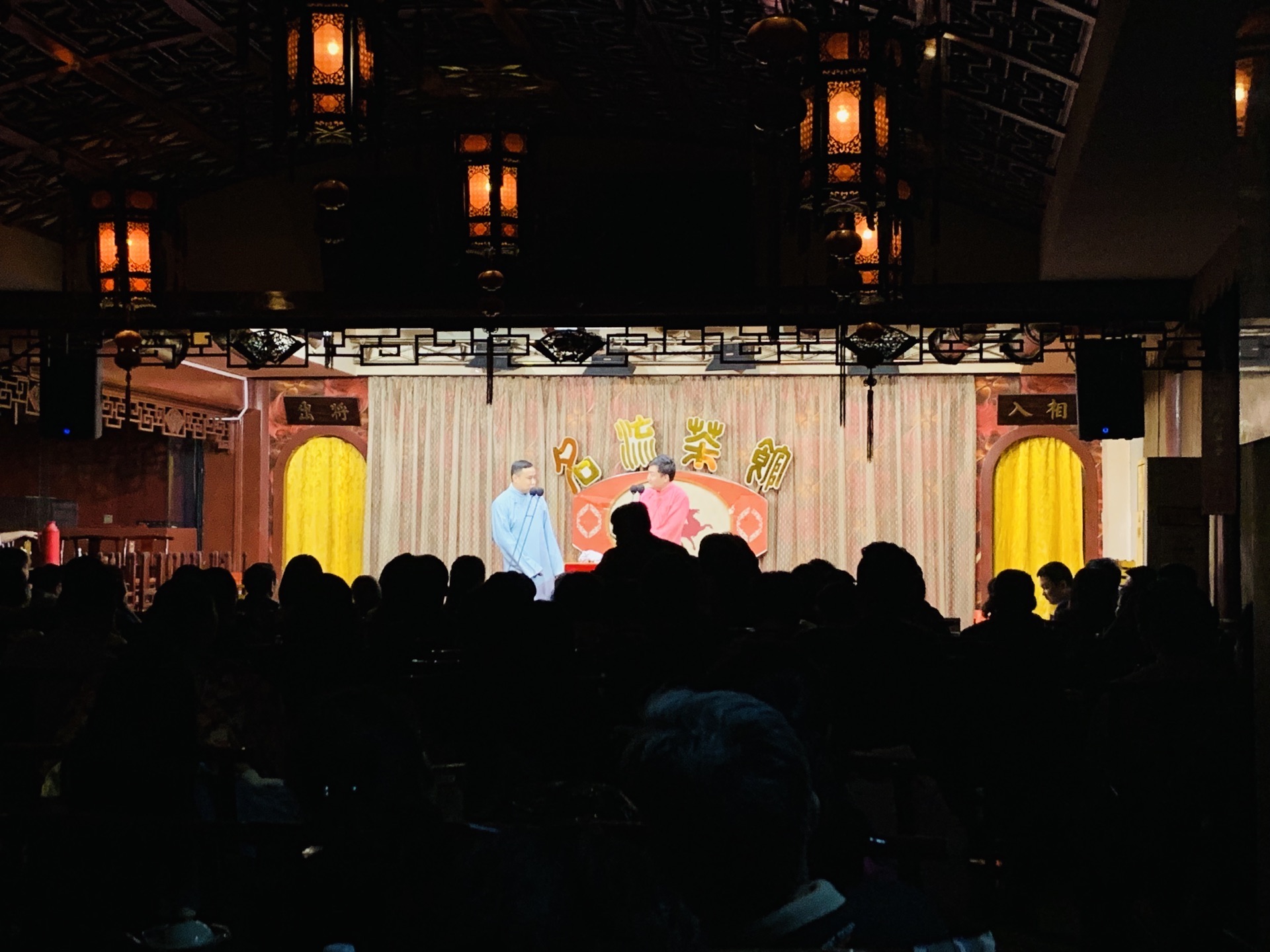 天津历史最悠久的茶馆,听相声的胜地,就在古文化街,挺好找的。本来没抱太大希望,就想休息一会儿,结果出乎意料的好笑,整个人像被点了笑穴哈哈哈哈哈,不愧是哏儿都啊!喝着茶吃着瓜子听着相声,完美!最喜欢小红和小绿,年轻的一对演员~茶水要单点,100一套~