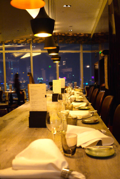 翡翠36餐厅是一个高档的创意法式西餐,法国菜。位于上海浦东新区富城路33号香格里拉大酒店紫金楼36楼(近名商路)。据说餐厅及酒吧的主厨是为数不多的巴黎先派厨师,美食,诱惑味蕾、创造惊喜。招牌菜众多,美味的鹅肝、高级的牛排、出众的巧克力挞,服务员善于搭配任意美食、讲解美食的名字与吃法。无论菜肴品相,或者口味,都有独特之处。在此用餐,象征了一种高档的与时尚的格调。餐厅开在五星级酒店内,错落有致的台阶,使得无论哪个角度望出去,都能观赏到外滩美景。翡翠色的玻璃配紫红色的真皮装饰,布置得华丽而低调。遥望外滩时,特别在晚上,会让人以为自己处于世界最繁华之地。价格不菲,适合一切有记念意义的事件,比如表白、求婚、爱情纪念日等。去一次也会怀念很久。有景观位,订座服务,有停车位,有表演,有服务费,提供在线菜单,有夜宵,全场禁烟