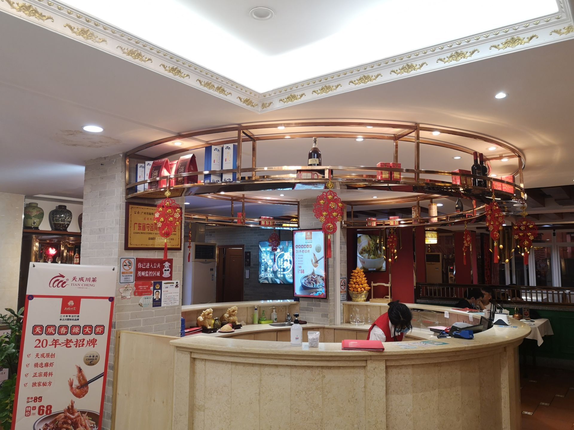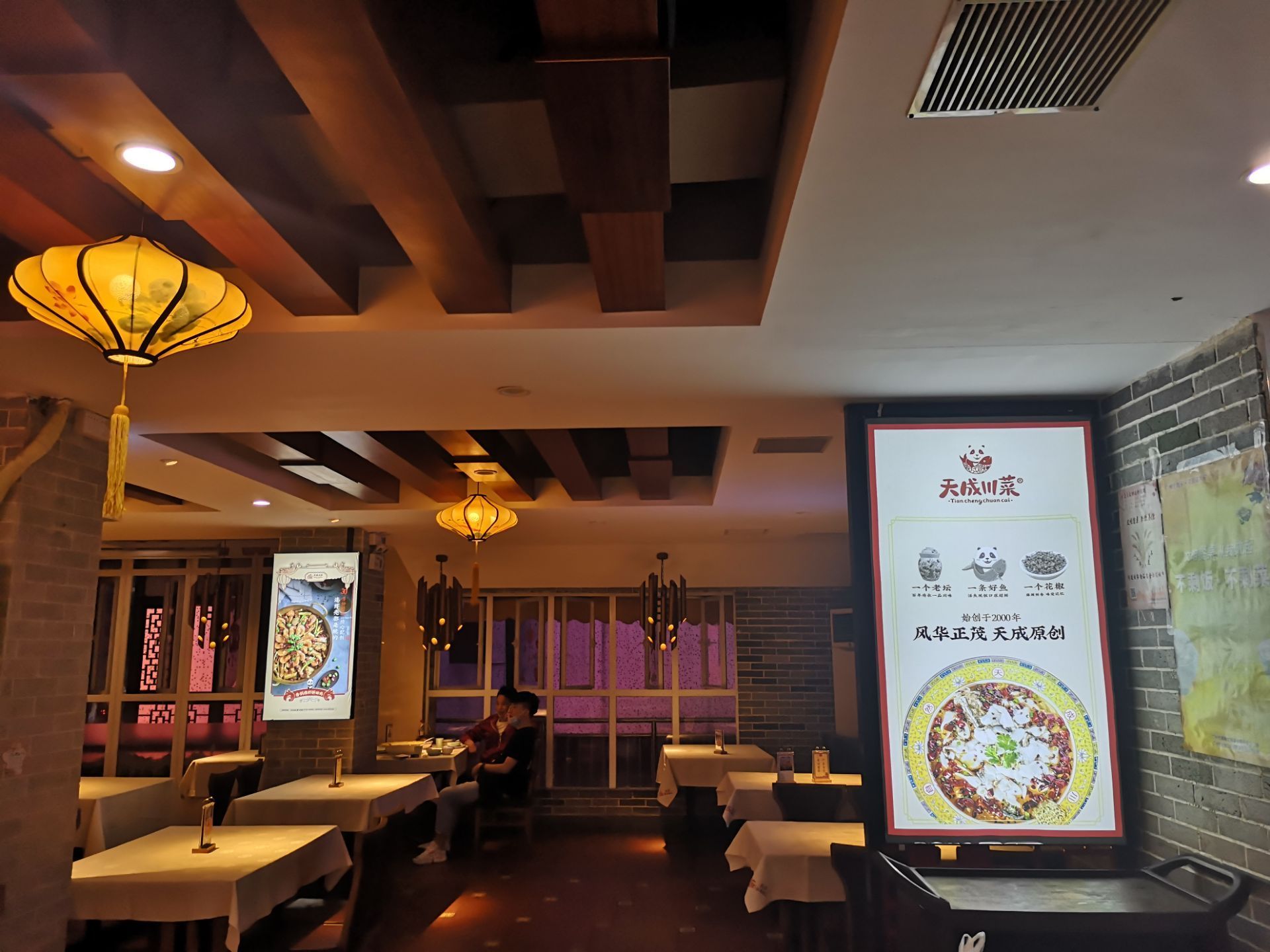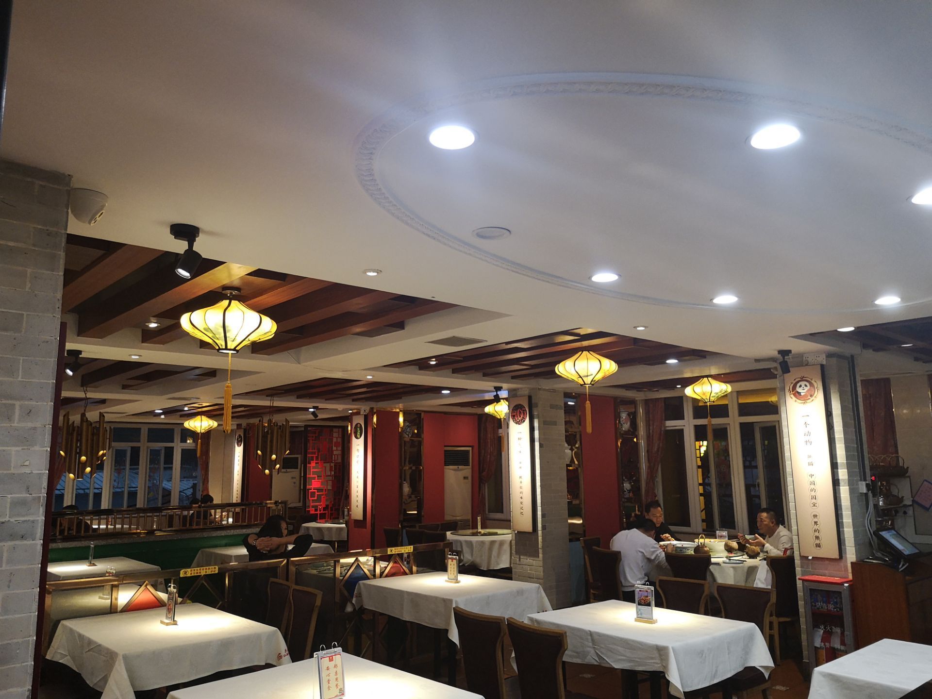 二楼这边现在全部都换成了天成的吉祥物小熊猫,比起以前还真的是可爱多了,而且的话,现在这里面的很...二楼这边现在全部都换成了天成的吉祥物小熊猫,比起以前还真的是可爱多了,而且的话,现在这里面的很多桌子都是经过消毒的,在这里堂吃的话,也会刻意的隔开几张桌子。