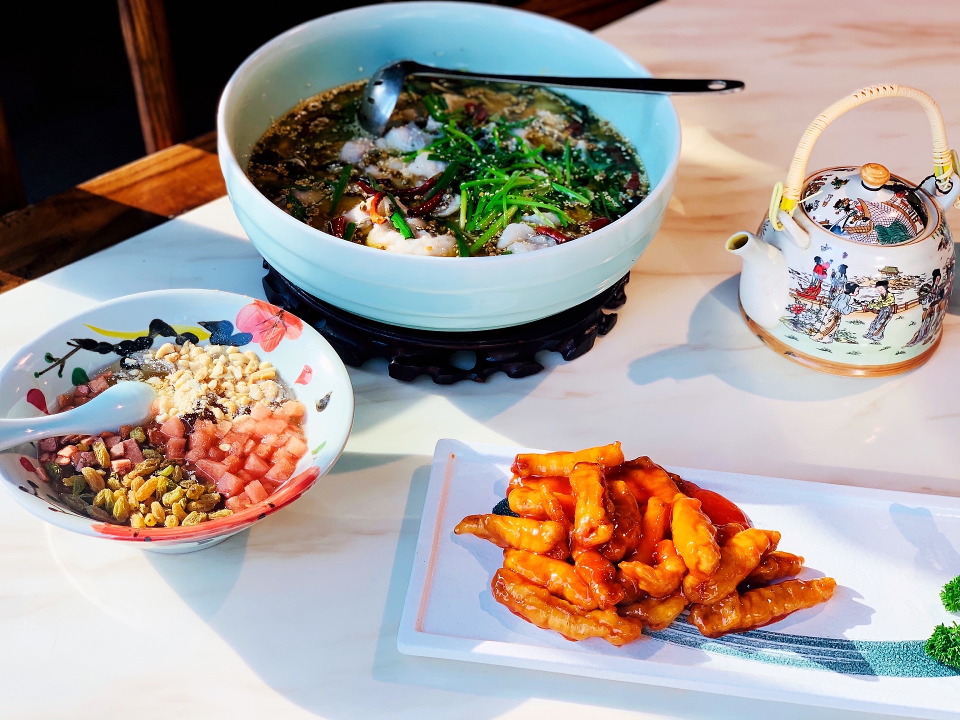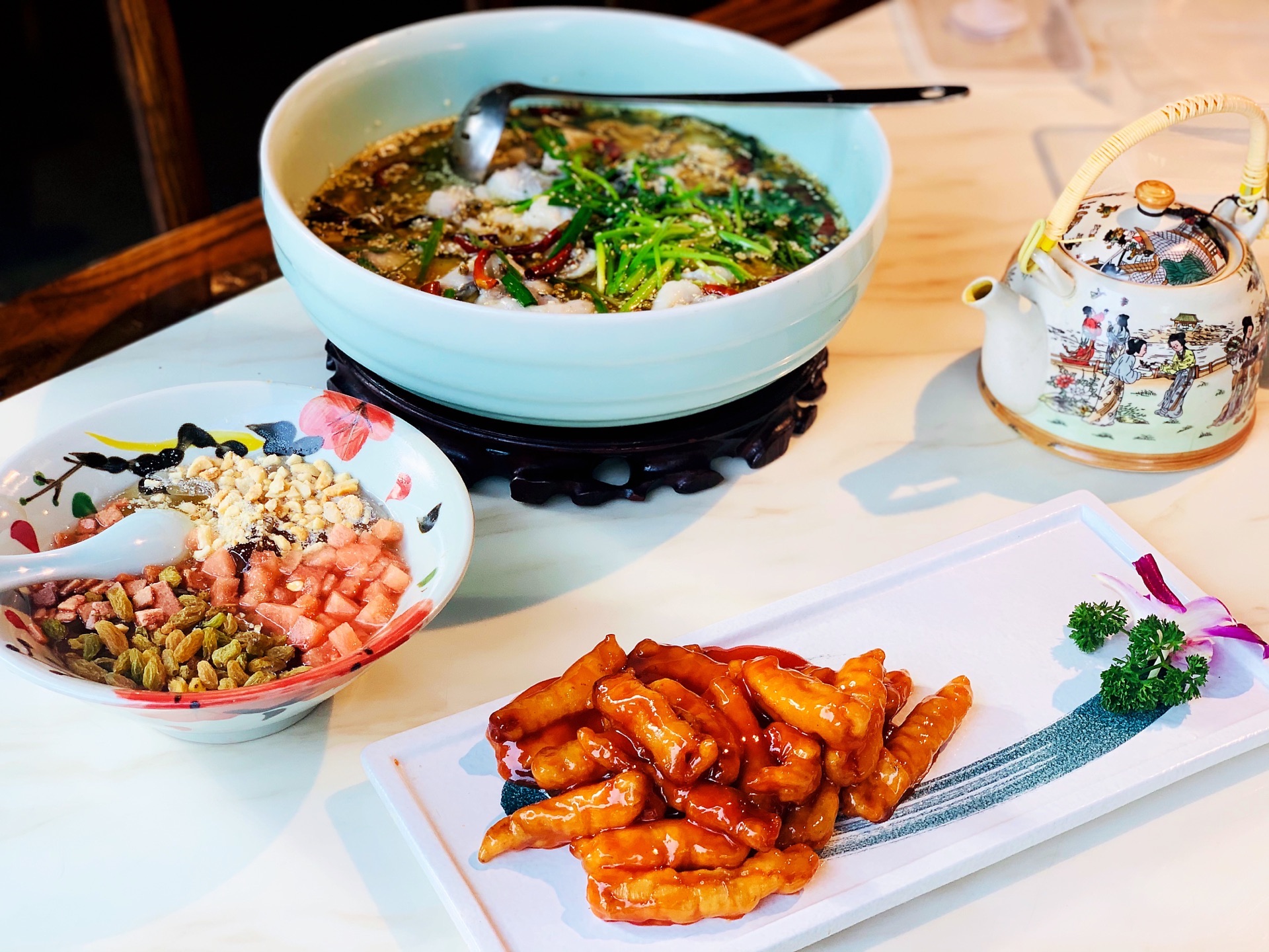 蜀谭记·盐帮川菜(田尚坊店) 钦州北路228号田尚坊商业中心2楼, 地铁九号线桂林路站1号口步行约1000米, 蜀谭记消费可免费停车1小时。 复工后的餐厅防疫工作非常到位, 量体温、消毒、登记信息、分散坐, 让食客也略感放心, 点了推荐菜单上的沸腾鱼, 入口鱼肉很嫩滑入口, 不单单麻和辣的口感, 味鲜醇香, 让好久没有吃辣菜的我直呼过瘾。