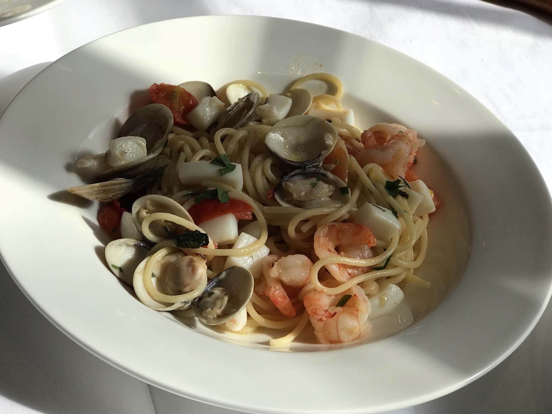 和老同学相约见面,选的是这条幽静的岳阳路,满满的都是童年的回忆。 午饭找的是这家意大利餐厅,在翻修改造后建业里,因为,去的比较早,餐厅刚刚开门,才得以参观了一下餐厅,拍了这些照片。服务员推荐我们4个人点了两份三道菜和两份二道菜的午时套餐,吃下来量正好,牛排每个人都来了一份,没敢要太生的,都要了6分熟的,餐前面包是店里的特色,是店里自己做的烤饼,脆脆的,热的时候特别好吃。