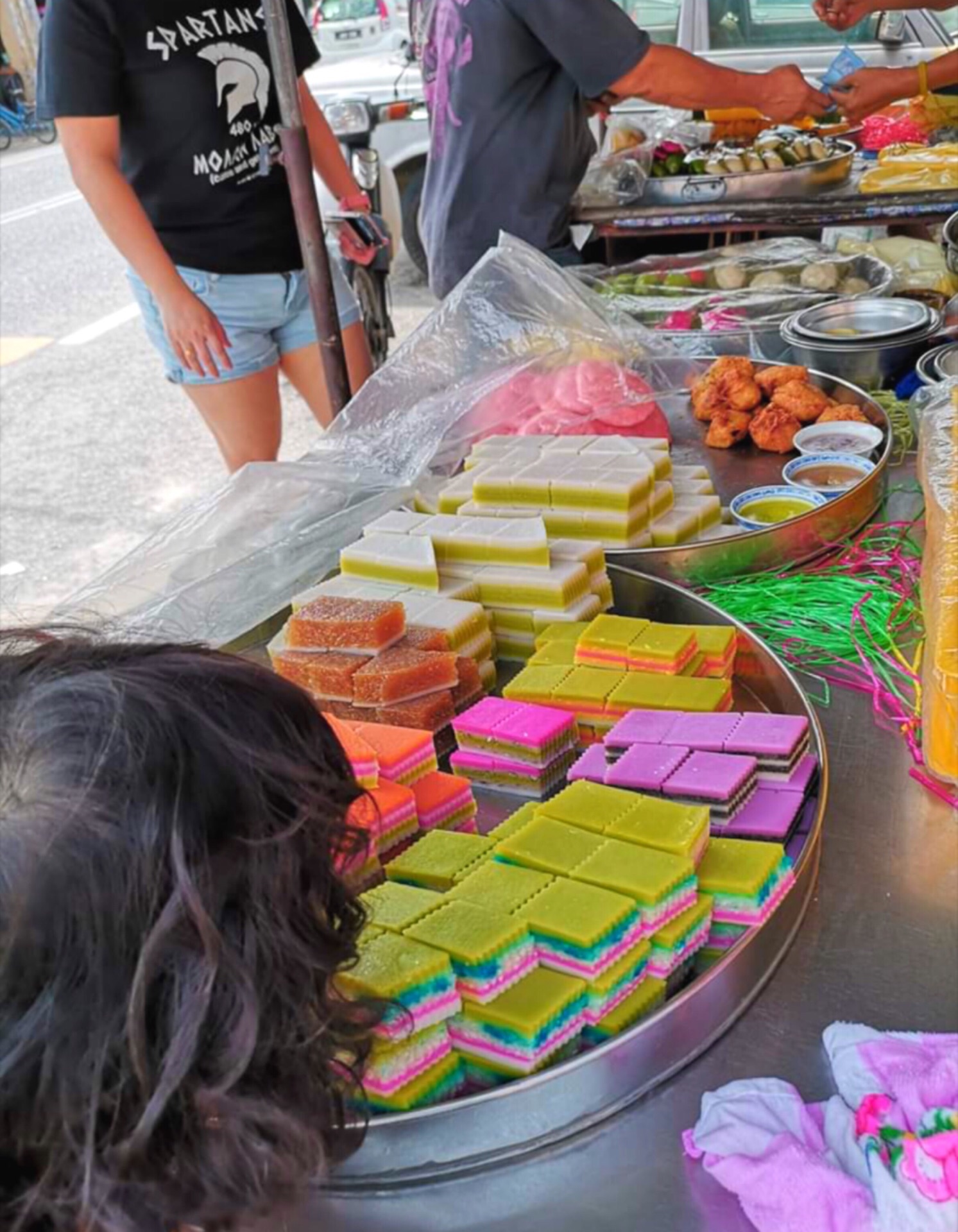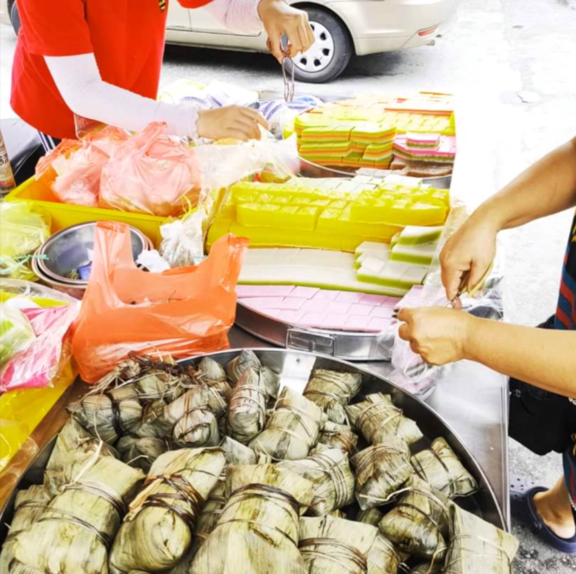 丢回2019年底在马来西亚怡保州旅游。离市区不远有一个布先小镇(Pusing)。我就在一条大街上,看到有几档街边摊卖客家茶粿。 选一家特别多人排队的摊位,一看摊上那些五颜六色的糕粿,好多都是我喜欢吃的!好想买回去新加坡,不过很多都有椰浆,放隔夜会酸臭的。只能买几个回酒店尝尝。 真好吃,价钱不贵👍🏻