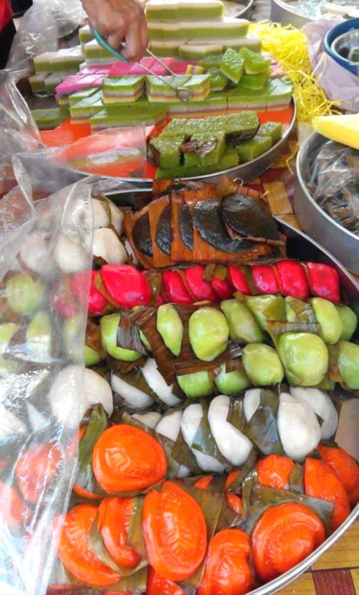 只能买几个回酒店尝尝。 选一家特别多人排队的摊位,一看摊上那些五颜六色的糕粿,好多都是我喜欢吃的