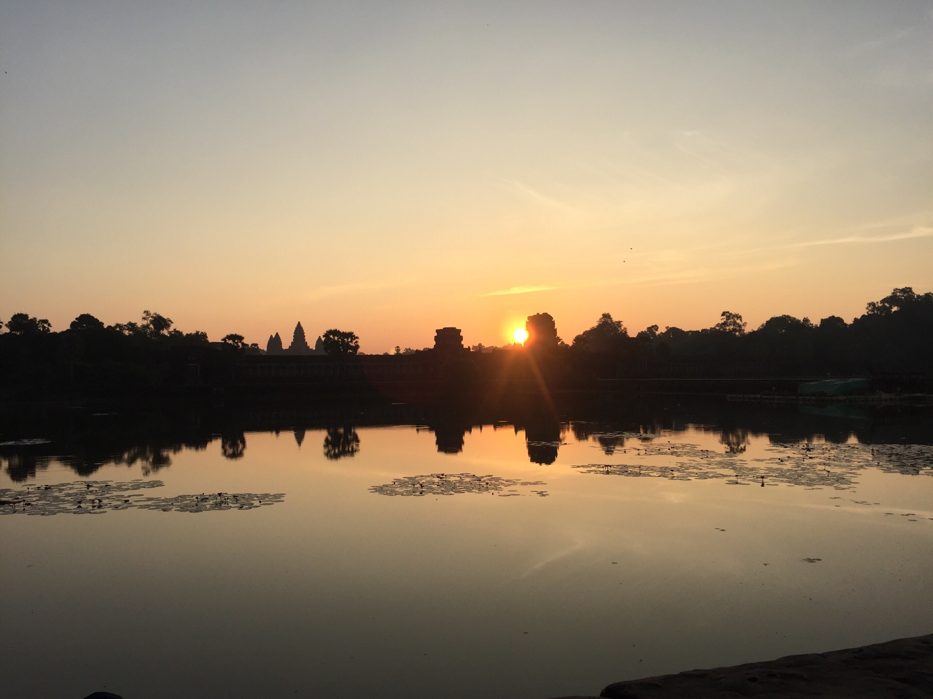 网友2020-03-17这里是最美的日出风景,也是暹粒最有影响力的景象这里是最美的日出风景,也是暹粒最有影响力的景象。早晨一轮红日徐徐升起,小吴哥古迹的轮廓逐渐清晰,形成一幅美丽的画卷,水塘里映衬着巍峨耸立的古迹,让人非常难忘。