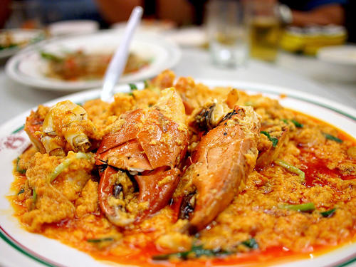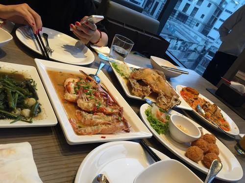 到泰国的第一餐,值得推荐咖喱蟹,真的很美味,如果能配上一碗米饭那可真是绝了到泰国的第一餐,值得推荐咖喱蟹,真的很美味,如果能配上一碗米饭那可真是绝了!有一个类似糖醋鱼的还不错,其余的一般般,四个人花了4000泰铢,还算可以,主推空心菜和鱼。