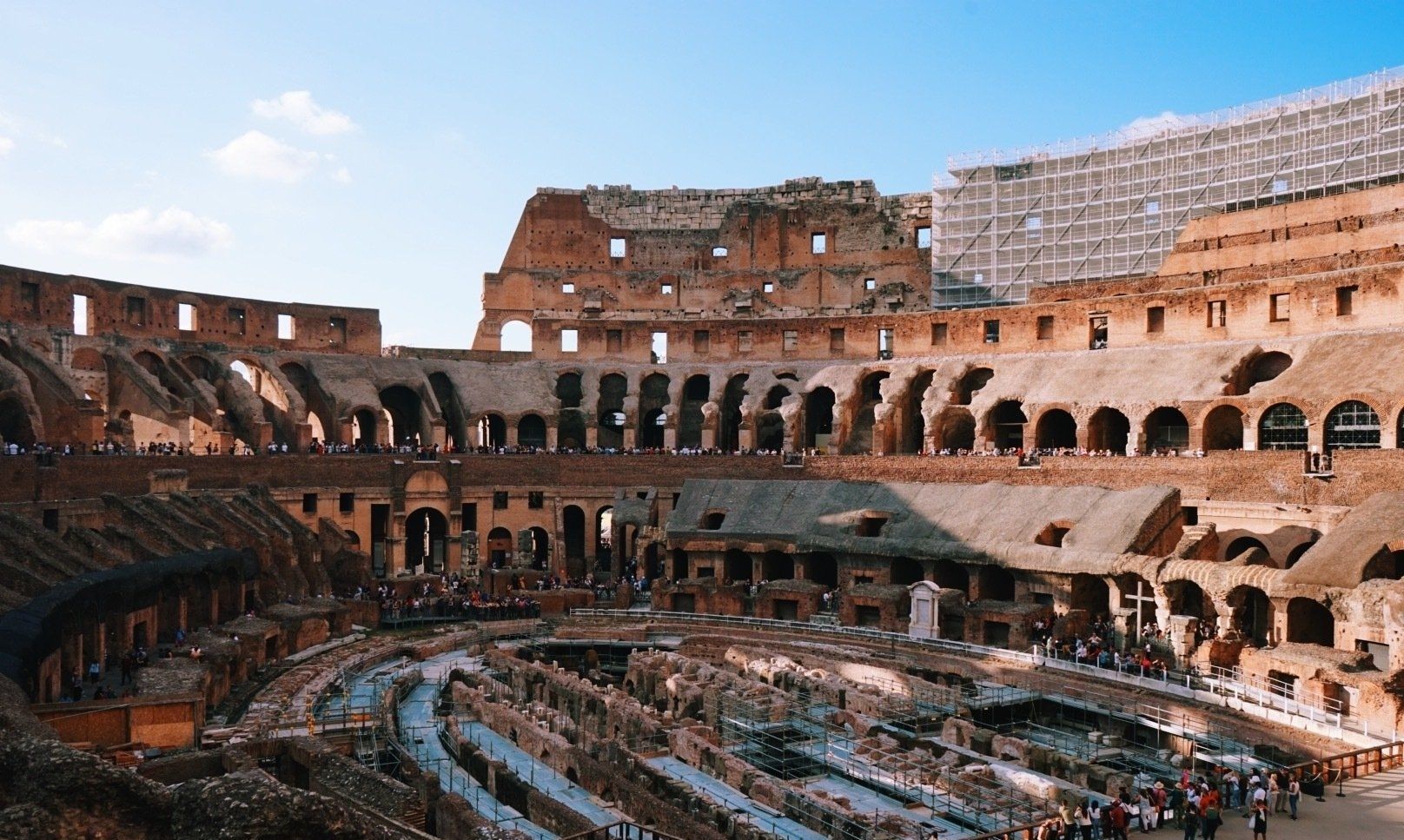 古罗马斗兽场 顾名思义是古代人斗兽的地方,每则斗兽故事都异常残暴,但在古代却是贵族门津津乐道的消遣谈资。 建筑最了不起的是它科学的设计,整个斗兽场最多可容纳9万人,却因入场设计周到而不会出现拥堵混乱,这种入场的设计即使是今天的大型体育场依然沿用