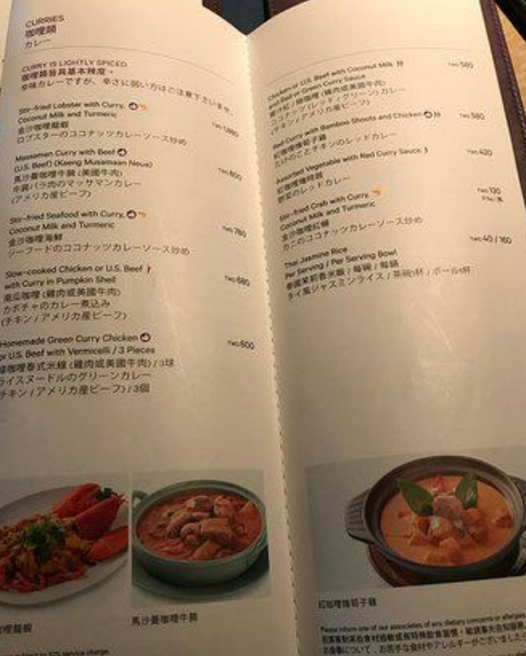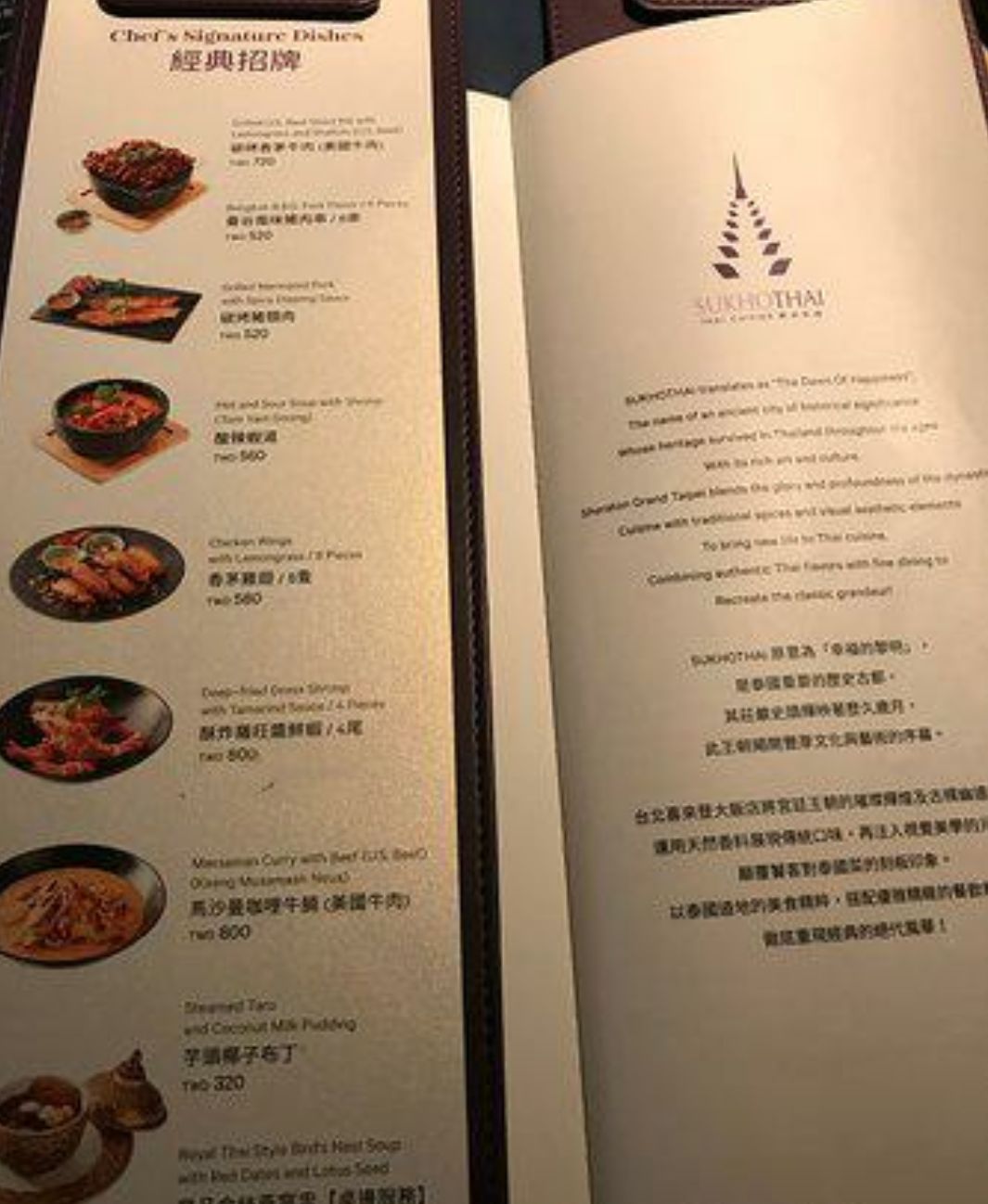 不过应该比较符合台湾人的口味毕竟是在喜来登的泰国餐厅,气氛跟餐点都有到一定的水准,而且用料还蛮实在的。小缺点就是味道比较没有这么辣,虽然都会提醒说这道菜口味有点辣,但吃起来都没有。不过应该比较符合台湾人的口味。
