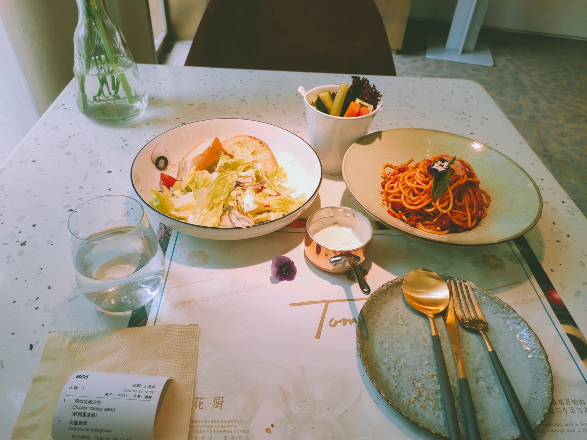 防疫的工作做的算非常的到位啦!特别适合小姐姐过来拍照打卡 |肉酱意面^|鸡肉凯撒色拉^就自己一个人