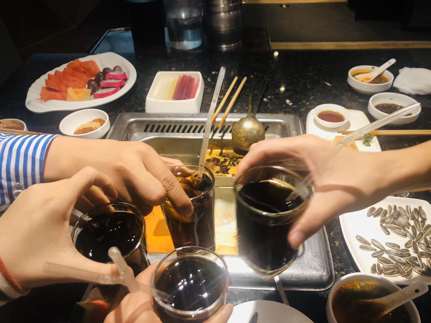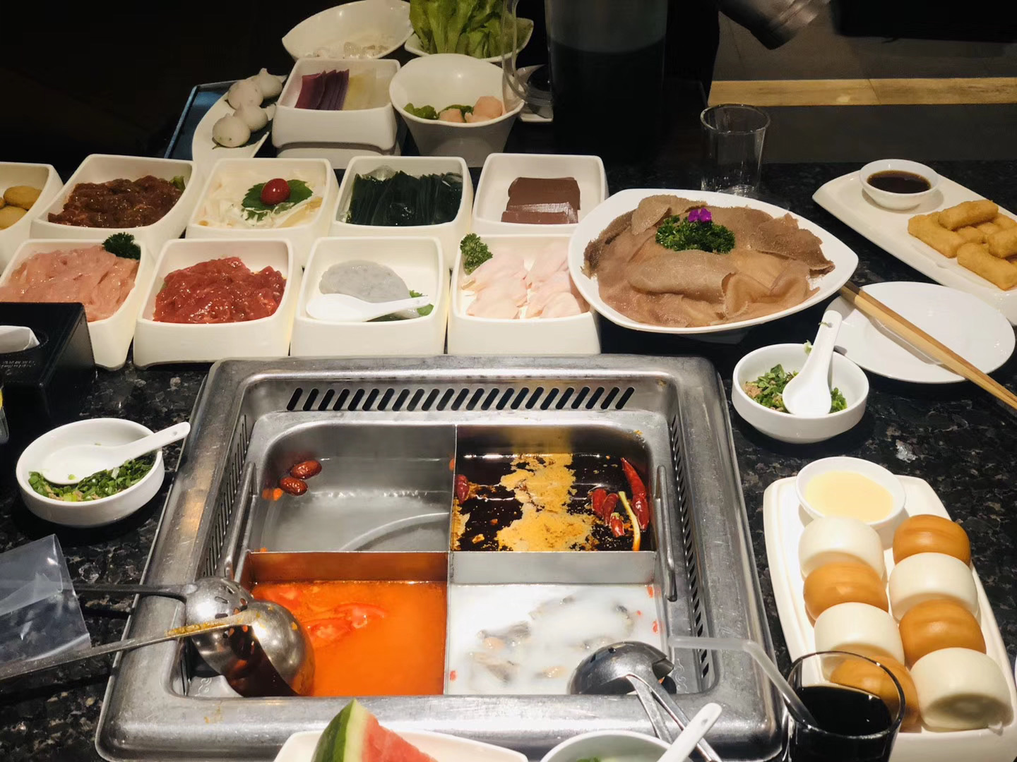 上河坊海底捞已经成了我们聚会的老地方了 🦠疫情发生后,最怀念的就是海底捞了😫 🔻锅底我一般最爱的就是番茄🍅锅底拉! 但是小伙伴喜欢吃辣的,所以🌟推荐小伙伴们点锅底的最好省钱办法就是四宫格哦,一个番茄🍅一个辣锅🌶️一个骨汤🦴锅还有一个就可以点清汤锅,没个口味都可以吃到,又很便宜哦😎 🌟推荐几个我最爱吃的食物 1.捞派黄喉 以前从来没吃过,第一次吃的时候它很嫩很有嚼劲,超级不错👍 2.招牌虾滑 最爱的就是🦐虾滑啦!放在番茄锅里煮过,外面裹着番茄汁,又嫩又香! 3.特色滑牛 助在辣锅🌶️里,那个香辣嫩滑全包括了😋 4.蟹子包 还有一个最爱的就是蟹子包了,一咬开,满满的蟹子爆浆流出,想想现在口水都出来了😂