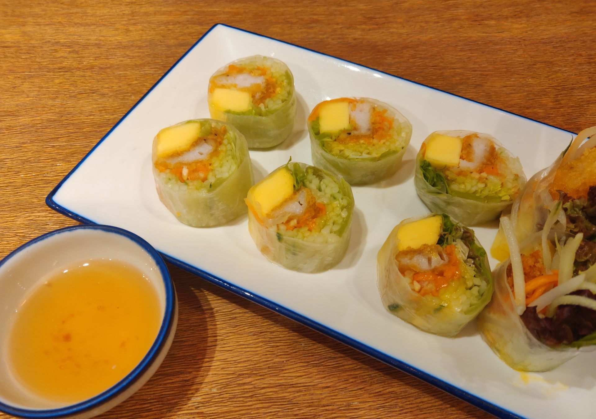 寻找大街小巷的美食, 一起七七喝喝度过美妙余生。 😘 ##餐厅:阮氏娘·越南料理(杏林东路万科里店) 之前在岛内吃过一次,这一家的越南菜,口感还不错吧,相对于其他餐厅,我觉得他家在厦门还是挺好吃的。|芒果鱼柳米纸卷^很清新的芒果卷。|越式椰香咖喱牛腩配饭^咖喱牛腩饭很老吃咖喱我超喜欢。