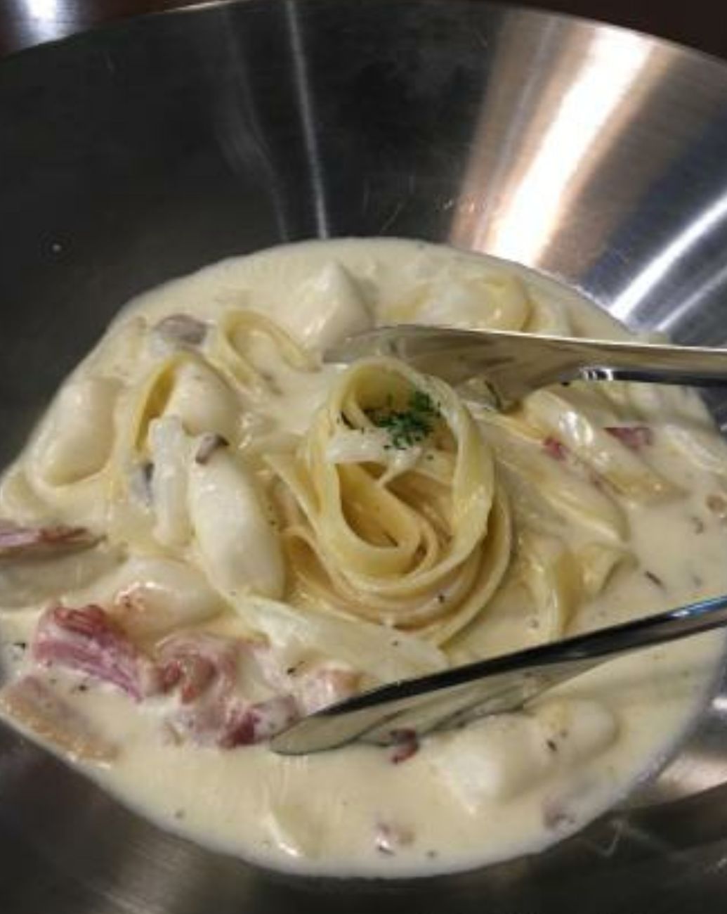就在新沙洞林荫道入口的地方,价格还算实惠,人气蛮高的,点了一份炒年糕和培根意面。培根意面没什么印象,炒年糕是我这次吃到的最辣的东西之一,不停地在喝水,上面的煎饺也蛮好吃的,就是米肠味道有点不太能接受,整体无功无过,可以尝试一下。