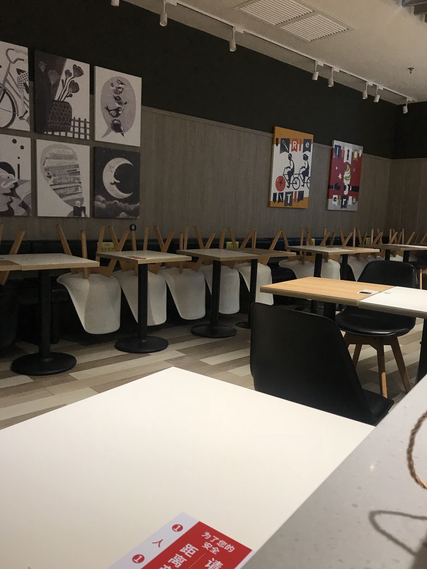 由于领着孩子,还是点了肯德基,堂食,居然就我们两个。经历了许久的沉默,大悦城终于复工了
