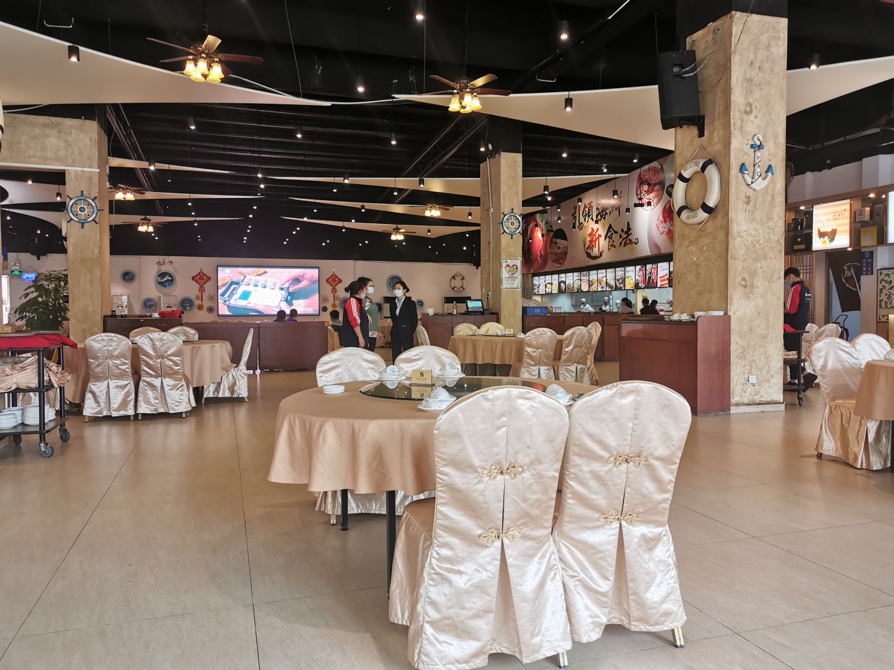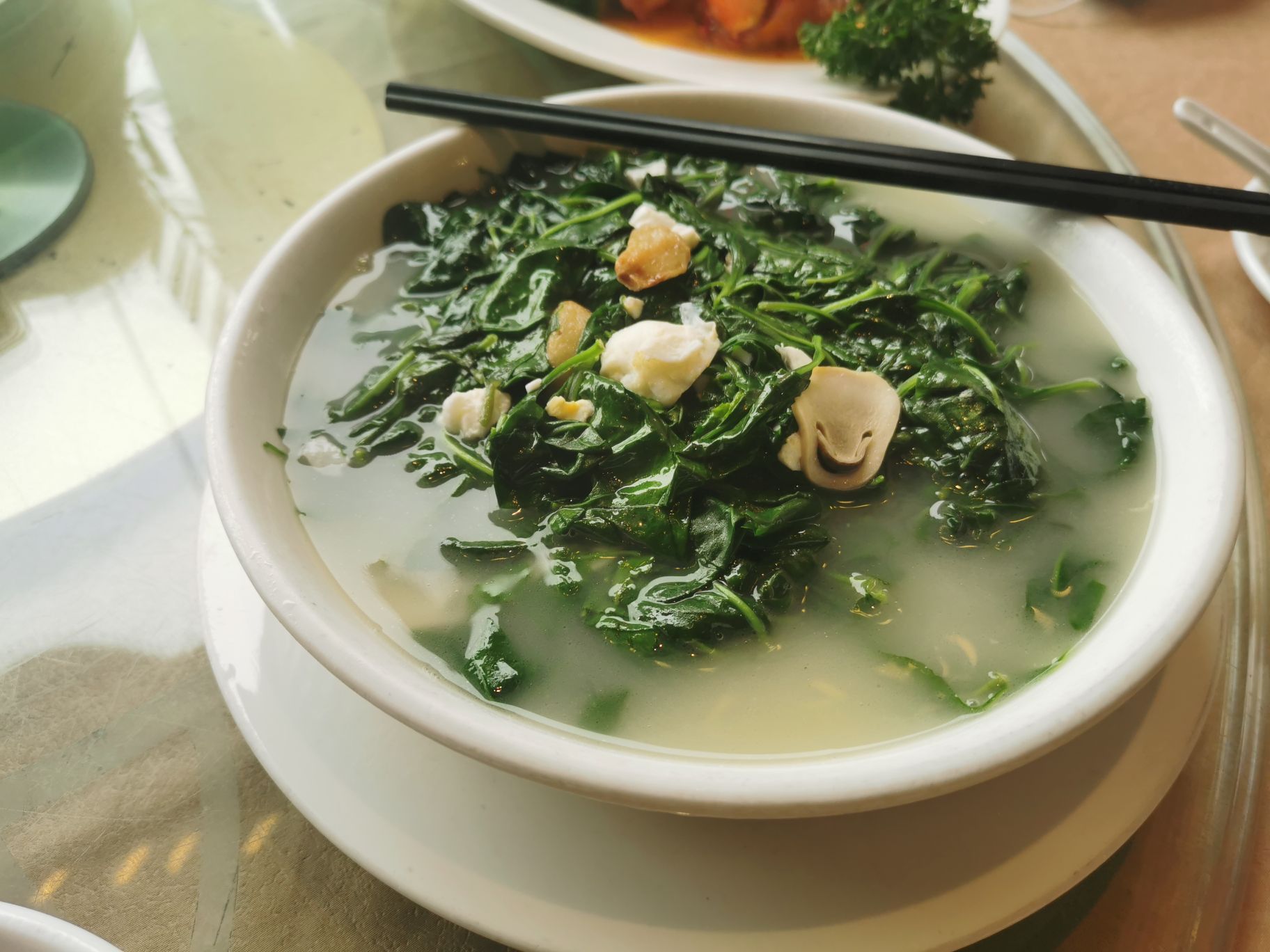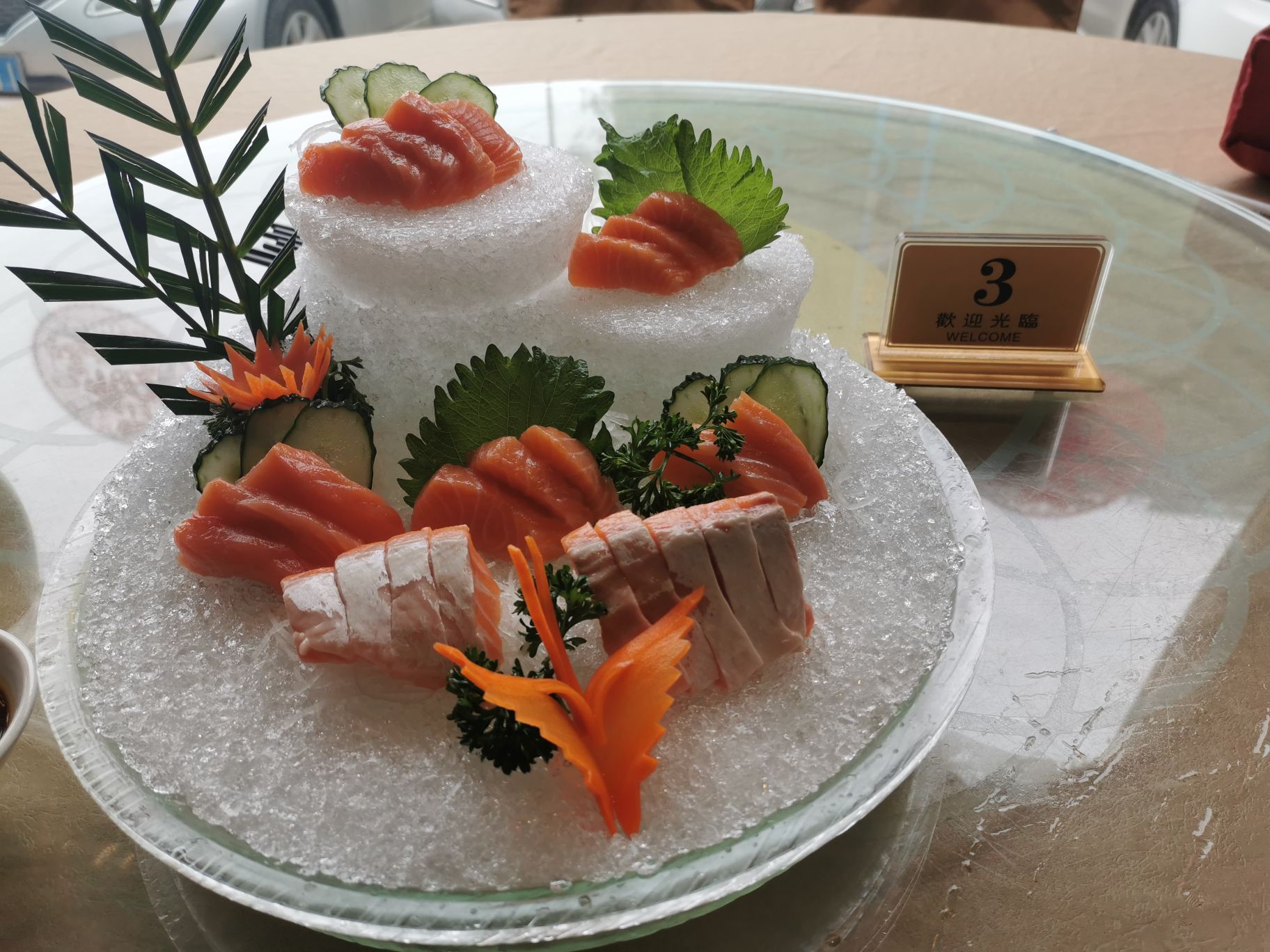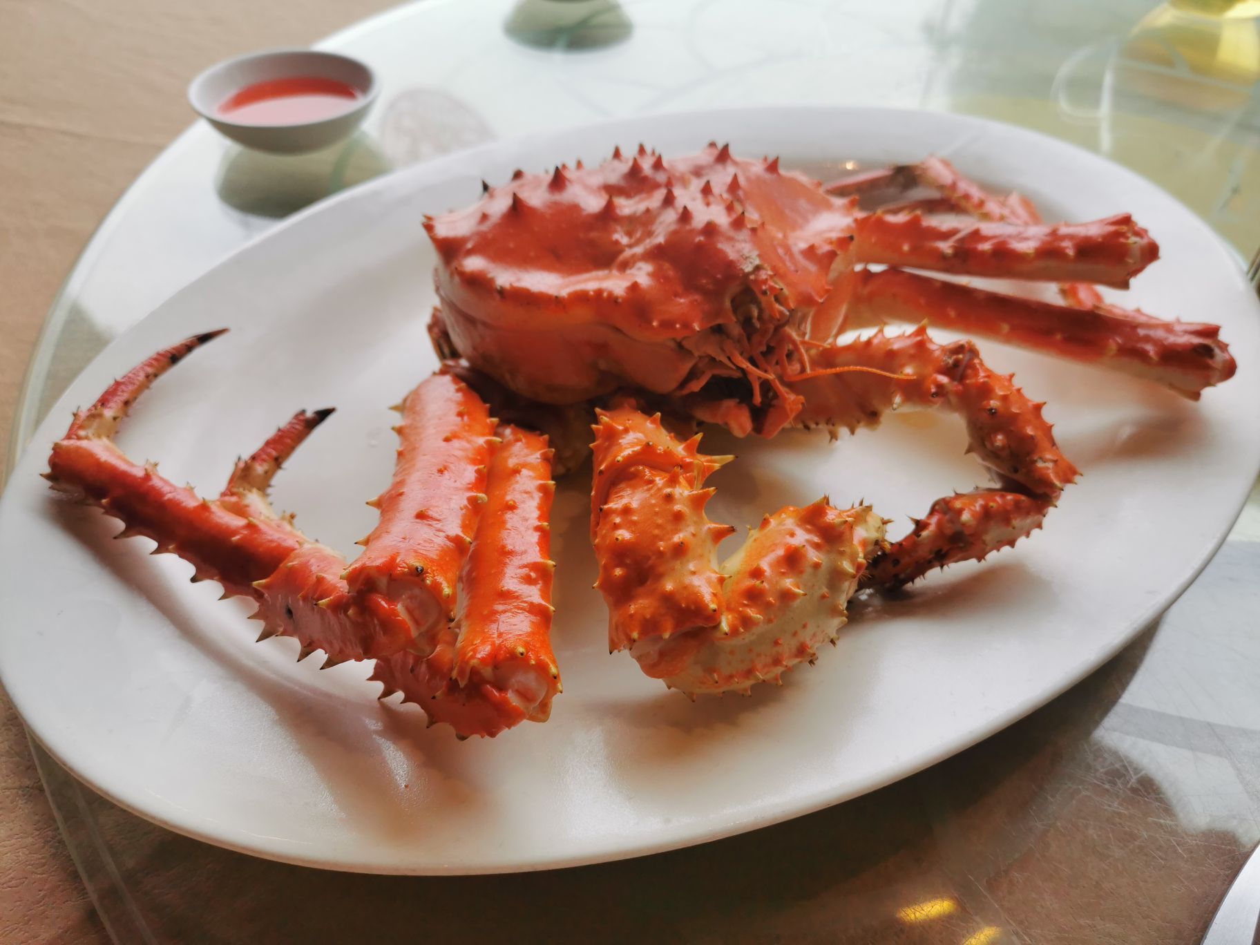 因为是疫情后开市第一次去的,人还是很少,大厅和海鲜池以往的人来熙样的情景不见了。比近二个月来第一次出去吃饭,有点想大撮一顿的想法,所以二个人吃了烧鹅、三文鱼刺身、原只蒸帝王蟹、芝士焗龙虾,今次的芝士焗龙虾不行,这家店不会制作,做坏了,对于不善于制作的店,还是让他们会做的好些。