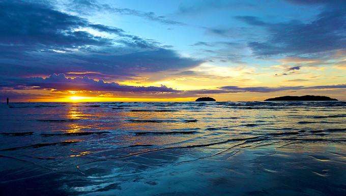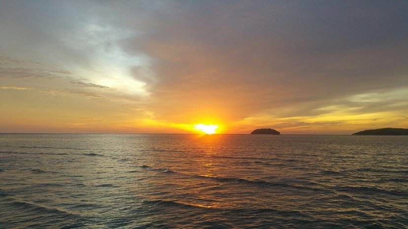 因为下午下了场雨,我们原本已经做好看不到落日的准备了,出发去商场的路上突然发现天边出现了一丝亮光,临时决定去丹绒亚路海滩碰碰运气。非常美丽!