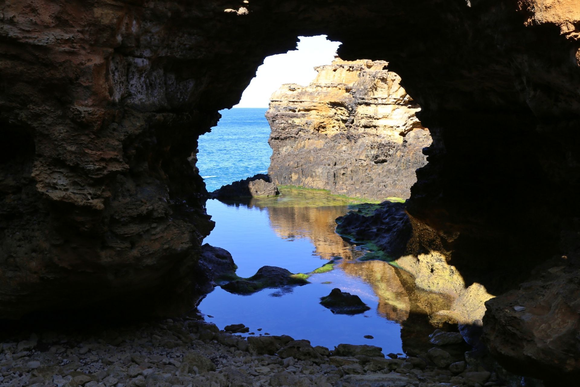 这是大洋路上相对比较小的一个景点,属于坎贝尔港范围内。这里比较有特色的是海边自然形成的一个洞穴,配合着大洋路漂亮的海岸线,还是值得看一下的。另外,这个景点也有停车场,可以开到这里停下来观光一下,也是蛮不错的选择