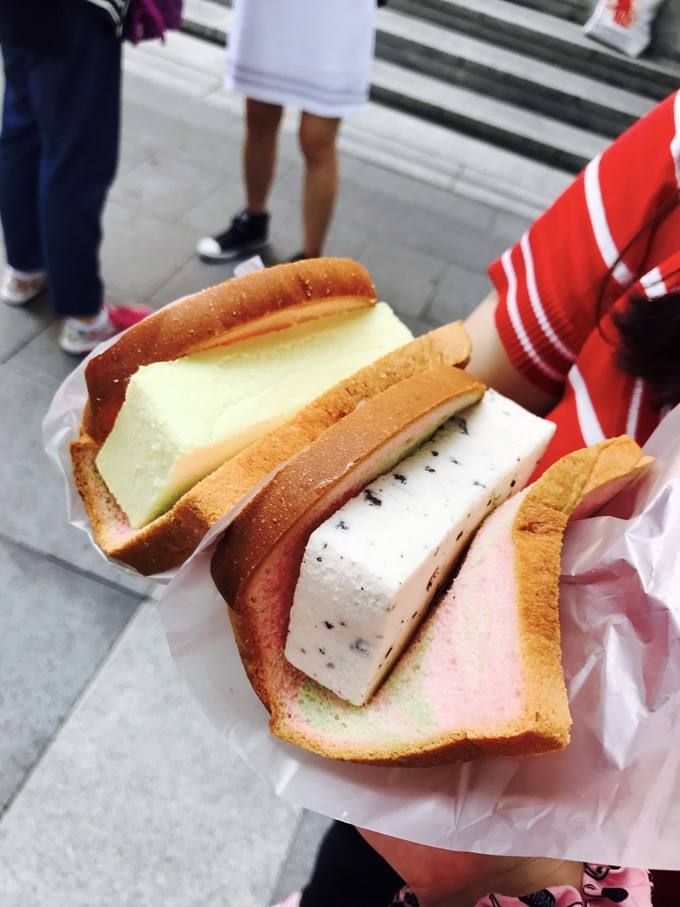 我觉得香草最好吃~有不同冰激淋口味可以选,我买的香草、椰子、草莓味冰激凌是用菜刀切开大的纸包装冰激淋,剥去包装纸,用威化饼或者面包片一夹,拿薄塑料纸一裹。有不同冰激淋口味可以选,我买的香草、椰子、草莓味。我觉得香草最好吃~。!