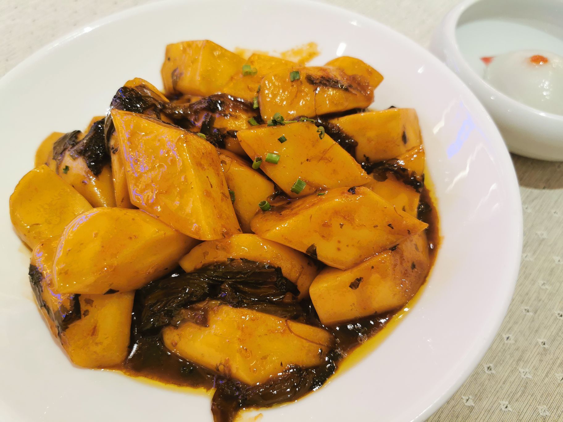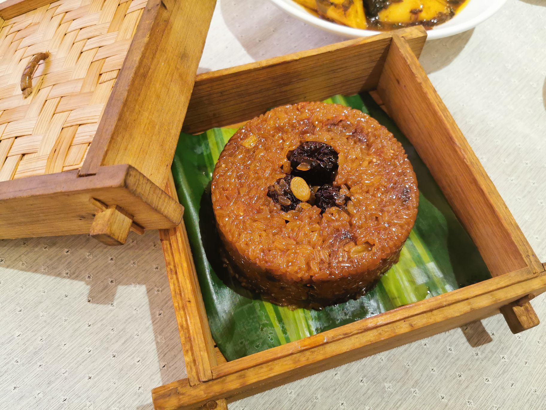 位置:陆家嘴金融中心9楼910 🌈🌈🌈来到陆家嘴金融中心,商场人不是很多,坐直梯到九楼,进店不用量体温,店员说最近甬府店里取消量体温了,只是在进商场要测量体温 服务: 店里现在都用排队,人很少,今天吃的太多,实在吃不下了,准备打包回去,说明来意,店员还是很热情接待,小乔美女人很好,一落座就给我倒上茶水,又给我端来一杯杏仁蛋白🌹 💜|黑枣酒香八宝饭^48元 打包回来,第二天热的时侯,香味四溢,仔细品尝后发现里面的配料黑枣有着浓郁的酒香,口感也比一般的绵密,看介绍才知道,原来这是用黄酒密封浸制20天以上,吸满了黄酒的醇香再入八宝饭的。而糯米饭的软硬度刚刚好,黑枣、枸杞、桂圆、葡萄干等天然甜香与糯软融合在一起,每一口都甜美醉人… ❤|烤菜水磨年糕^42元 以前没吃过烤菜年糕,原来烤菜就是烤好的青菜,青菜经过长时间的烘烤,菜叶会充分吸收了浓郁的汤汁 加上宁波特色的手工水磨年糕,厚实易熟、软糯不粘。青菜和年糕的灵魂组合,这还是宁波十大名菜之一👍 💙|手工宁波汤圆^8元 汤圆很好看,一碗一只,可以分餐按位上,这样很卫生,纯手工汤圆,不是那么圆,水磨糯米粉做的皮子柔韧粘糯的能拉出丝,里面黑芝麻馅,口感好吃到爆 💚|杏仁蛋白^蛋白也就是蛋清,杏仁和蛋白,两者结合煮制而成的杏仁蛋白可滋阴润肺、排毒养颜。一口下去满满的满足感
