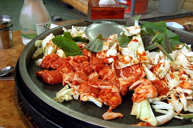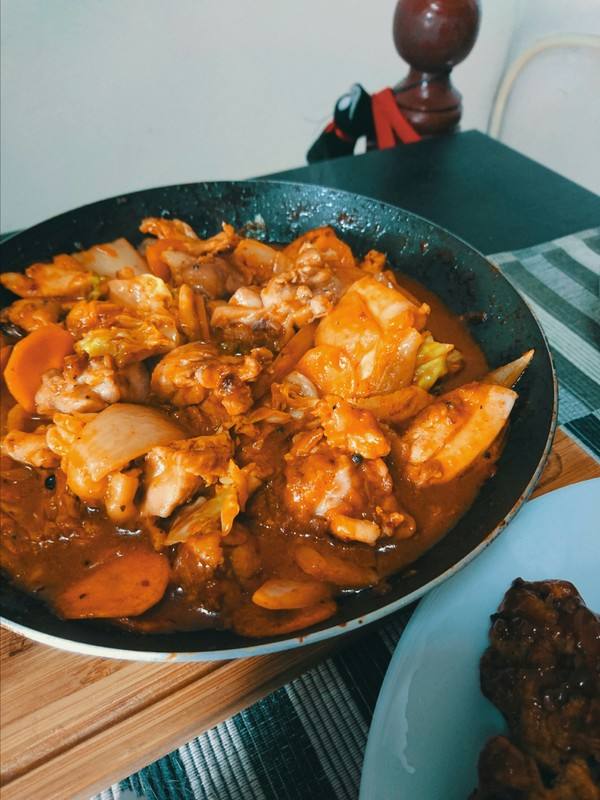 经首尔的朋友介绍的,一进店完全没有让我失望,菜单就写在墙上,全都是思密达文,欧巴,不得不说韩国人服务真棒,店内上冰水的时候,只需要很他们对视一眼,就会急急忙忙的跑到前台,拿出中文菜单,服务真的是太完美了。点了一份芝士炒鸡,。