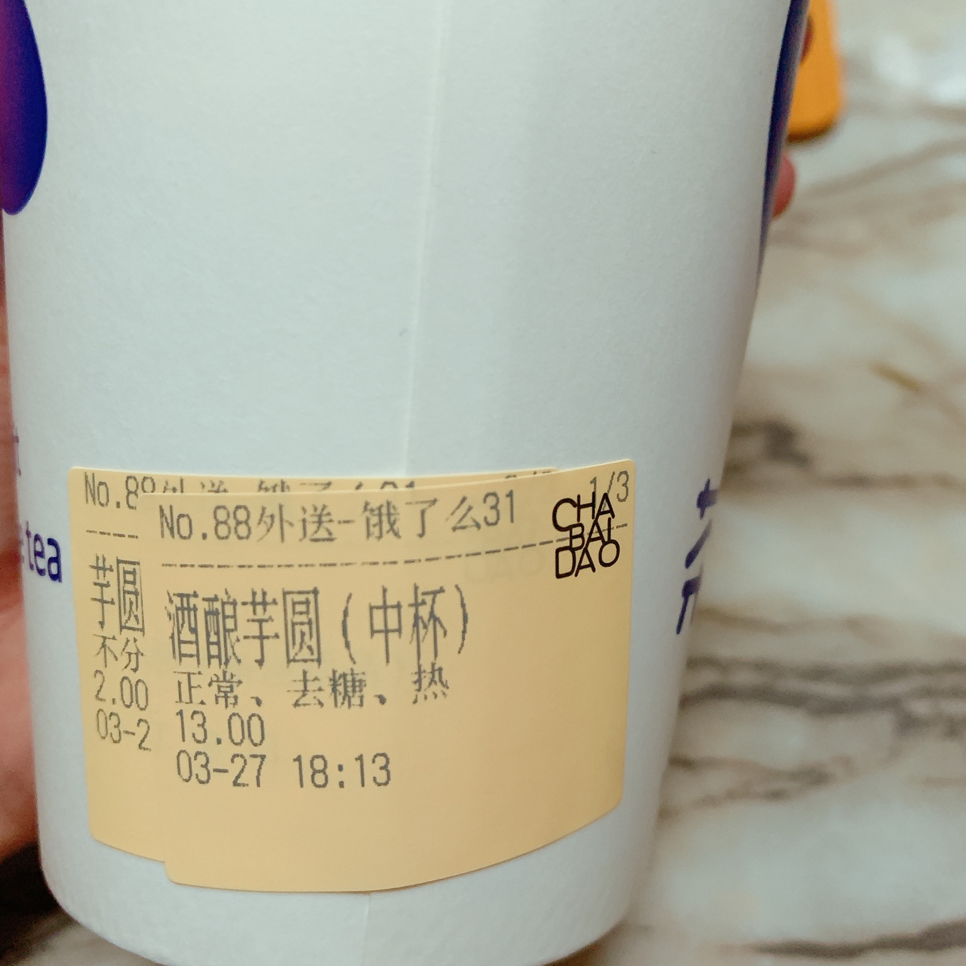 网友2020-03-28...杯茉莉奶绿,朋友想在奶绿中加芋圆,结果忘了备注,商家加到我的芋圆奶茶,两个人都有点伤心,哈哈哈今天下班前点了两杯奶茶,一杯芋圆奶茶,一杯茉莉奶绿,朋友想在奶绿中加芋圆,结果忘了备注,商家加到我的芋圆奶茶,两个人都有点伤心,哈哈哈。