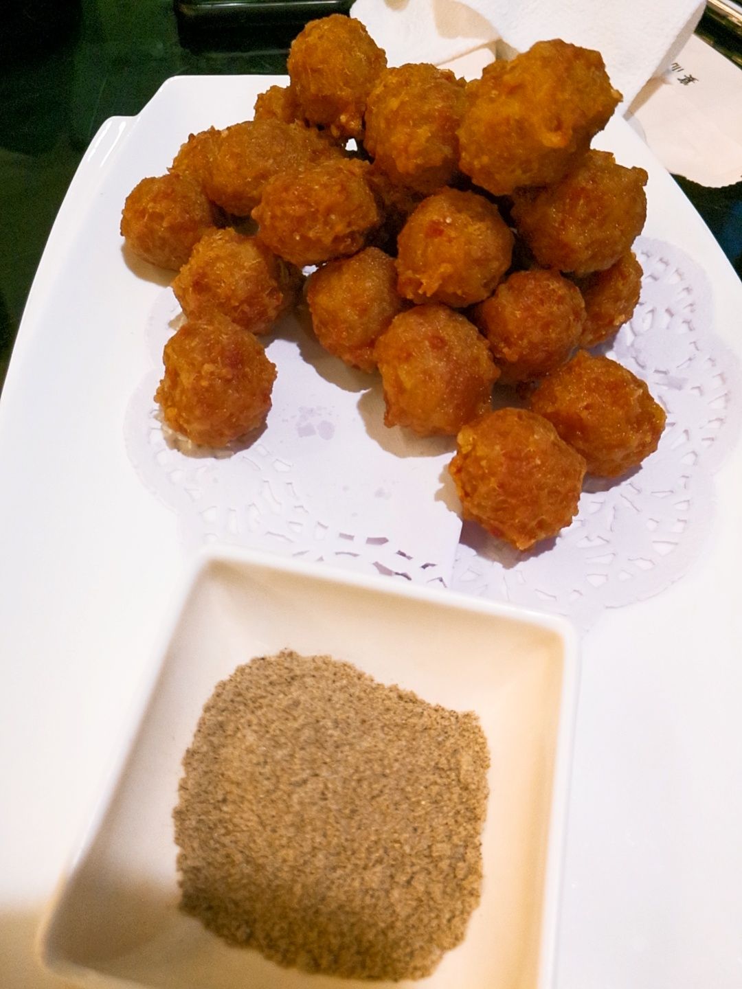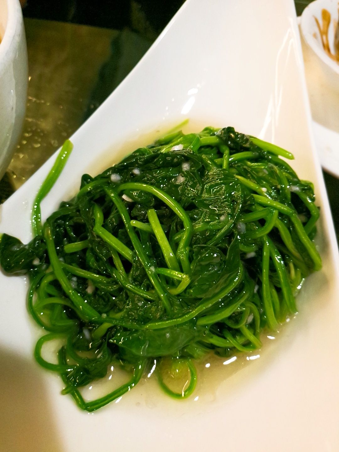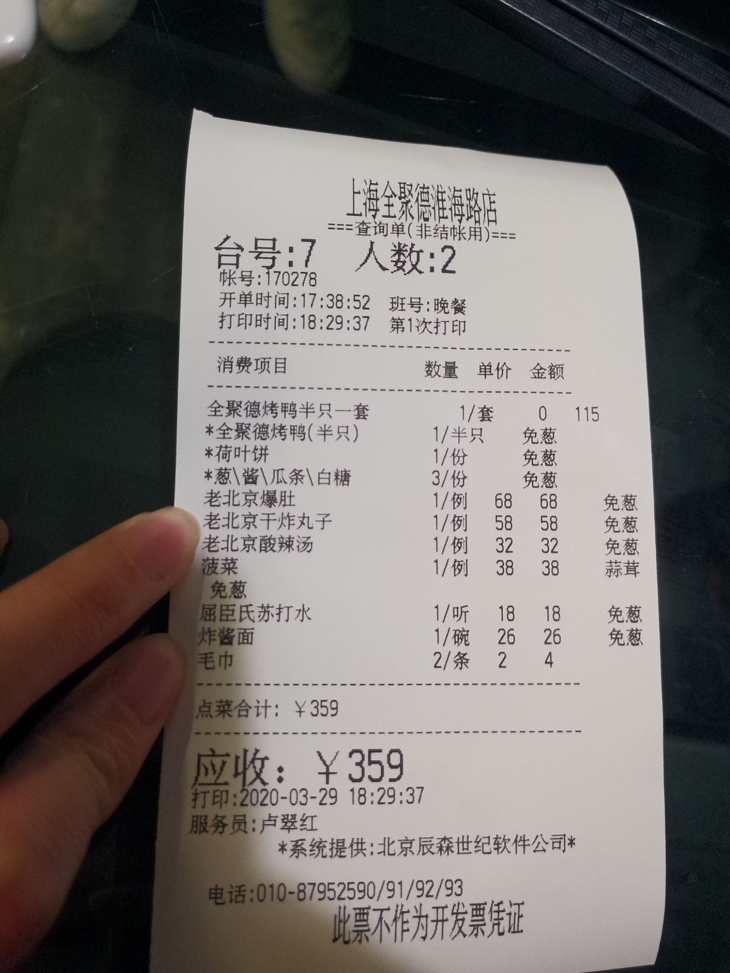 全聚德是我很喜欢的店,谁让我喜欢吃烤鸭呢。北京的全聚德给我印像最深的是服务很到位。上海火车站附近的全聚德除了烤鸭,让我印象最深的是一到叫木桶群鲜宝的餐品,不过是好多好多年前的事了,不晓得这道菜还保留着吗?至少淮海路这家没有。疫情期间都不敢在外面吃饭,昨天是来淮海路取戒子所以才破例一次,晚上的上座率只有三四成。点了半只烤鸭,也是现场片皮。半只鸭子木油鸭架,所以也就不用纠结做椒盐还是弄汤啦。鸭皮的口感还是有保证的,酥酥脆脆,满嘴留香。鲜榨果汁统统没有,所以就老老实实和白开水了,最近长了好几斤,碳酸饮料能免还是要免滴。