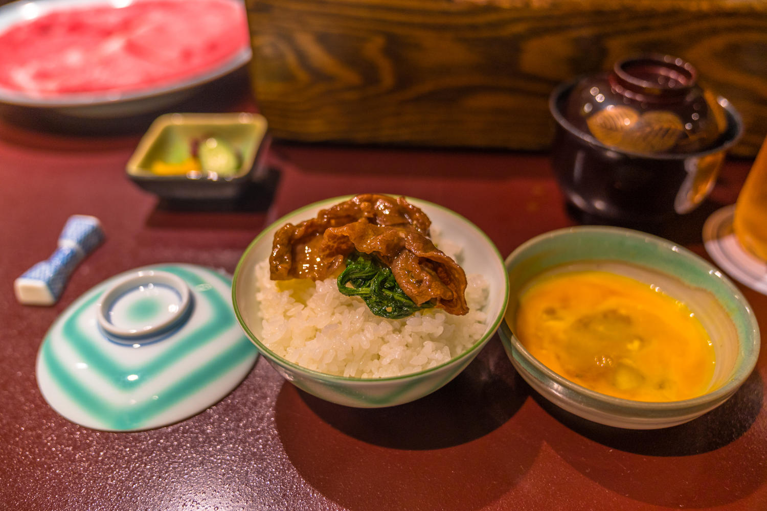 点了一份新鲜牛肉,配菜是豆腐、生菜、大蒜,这些也是日料中常见的配菜。煮熟的牛肉看着就非常有食欲,沾着酱料和酱油非常好吃。