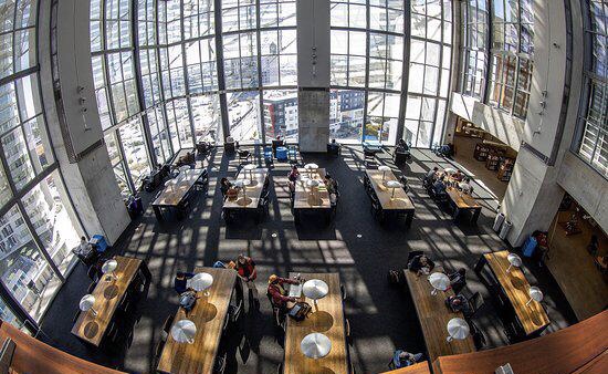 令人印象深刻的现代结构,拥有大量自然光线。我简直不敢相信公共计算机的数量,但是再一次,这就是西雅图。我使用图书馆提供的地图进行了自助游。 一楼的一位友好的图书馆员给我提供了很多信息关于回书传送带如何工作的,最有意思的一点。非常有趣的一课。 请务必查看“红色楼层”,然后抬头到达顶部,将大厅的美景尽收眼底。